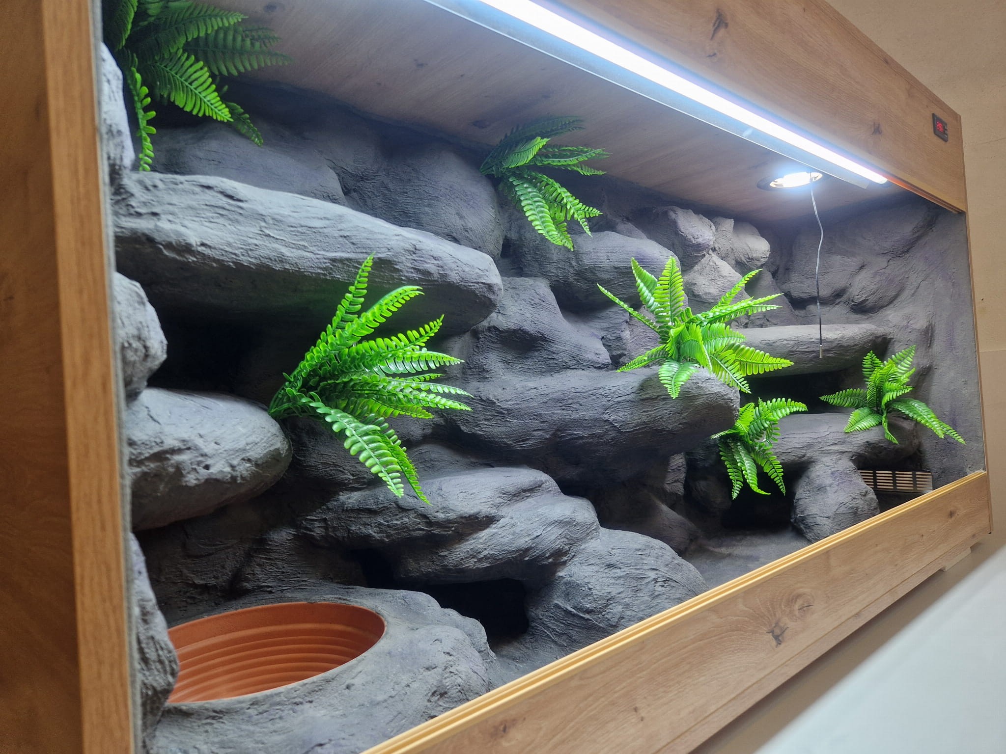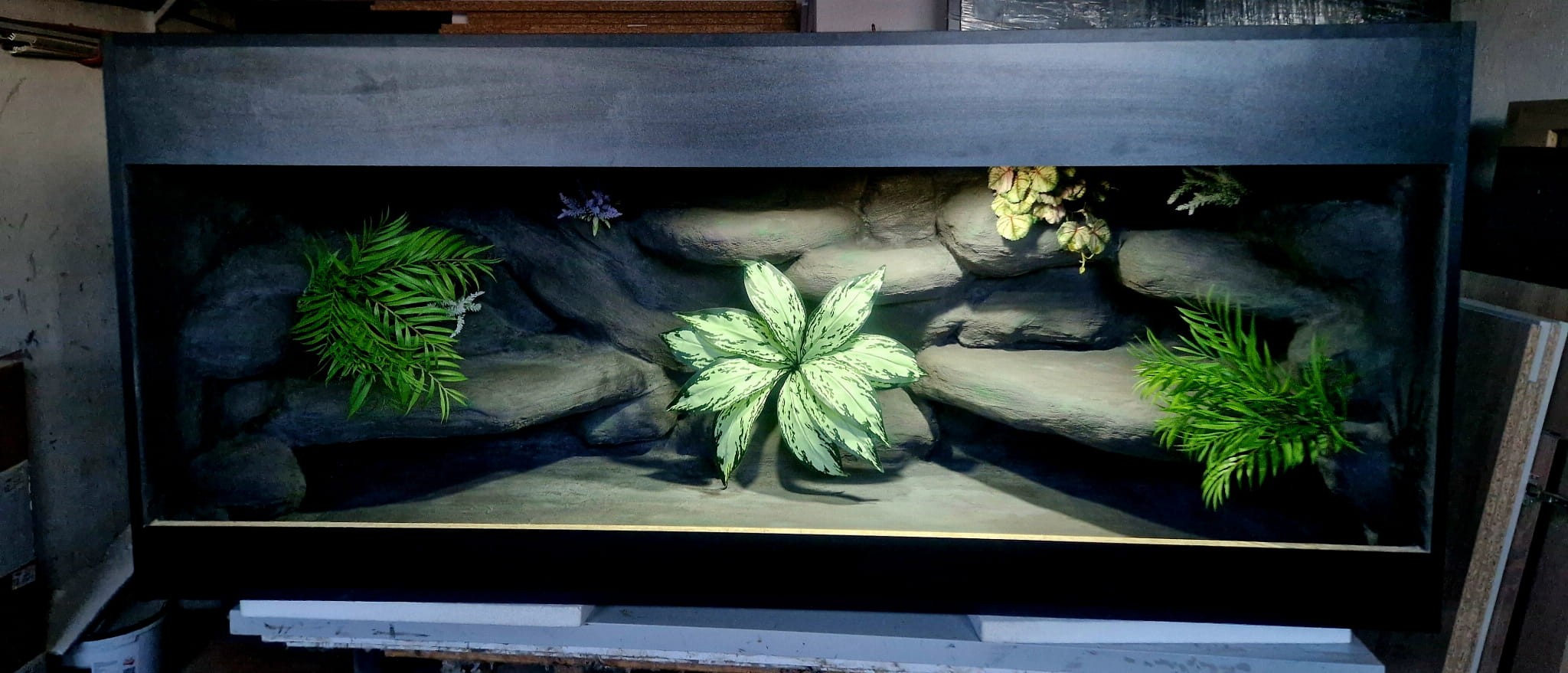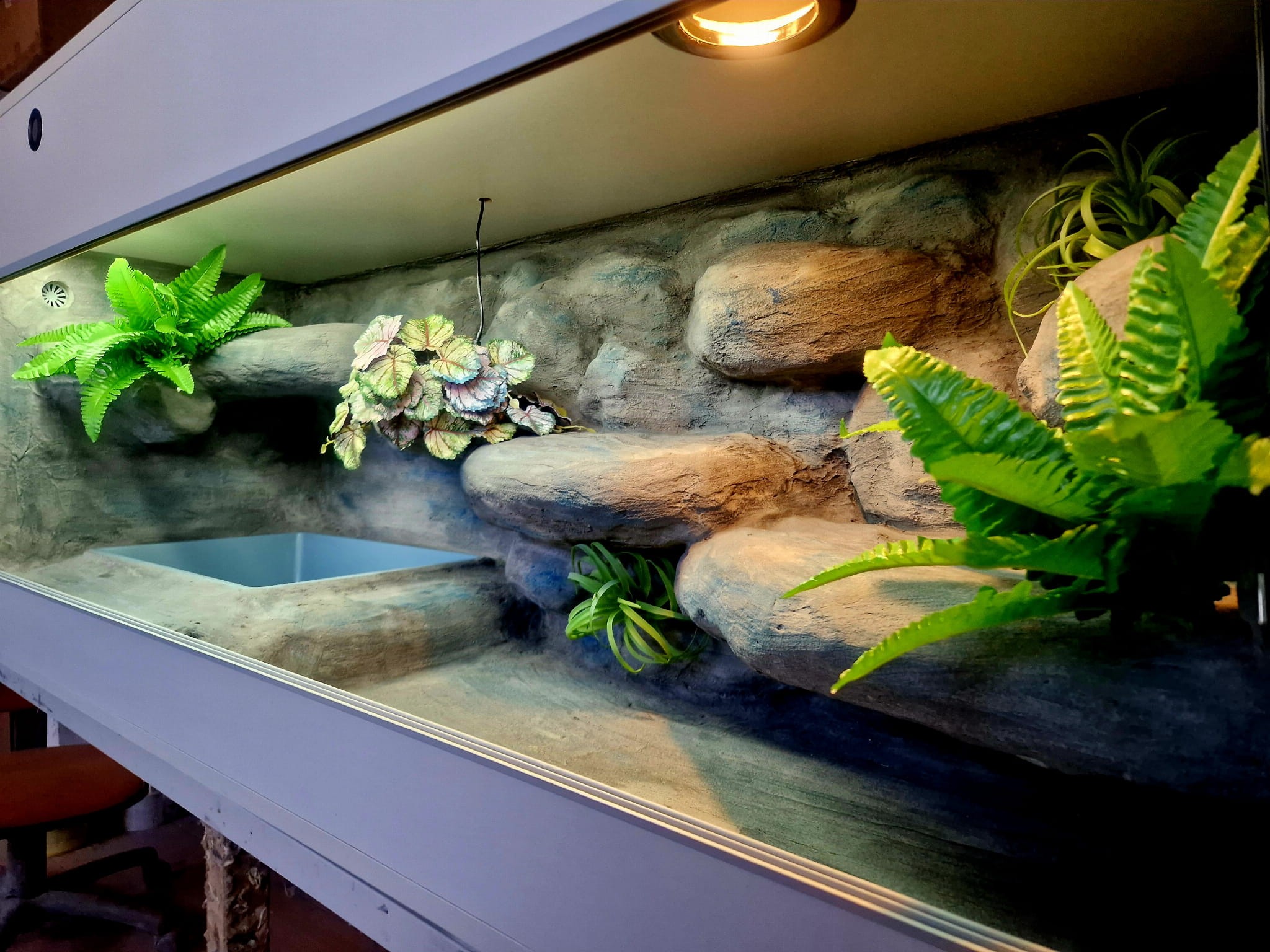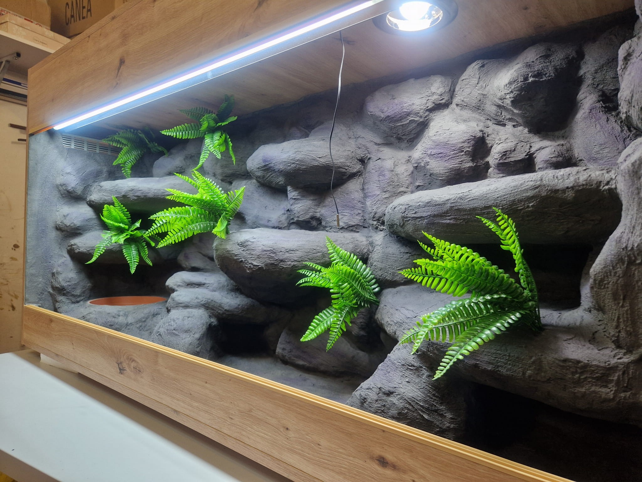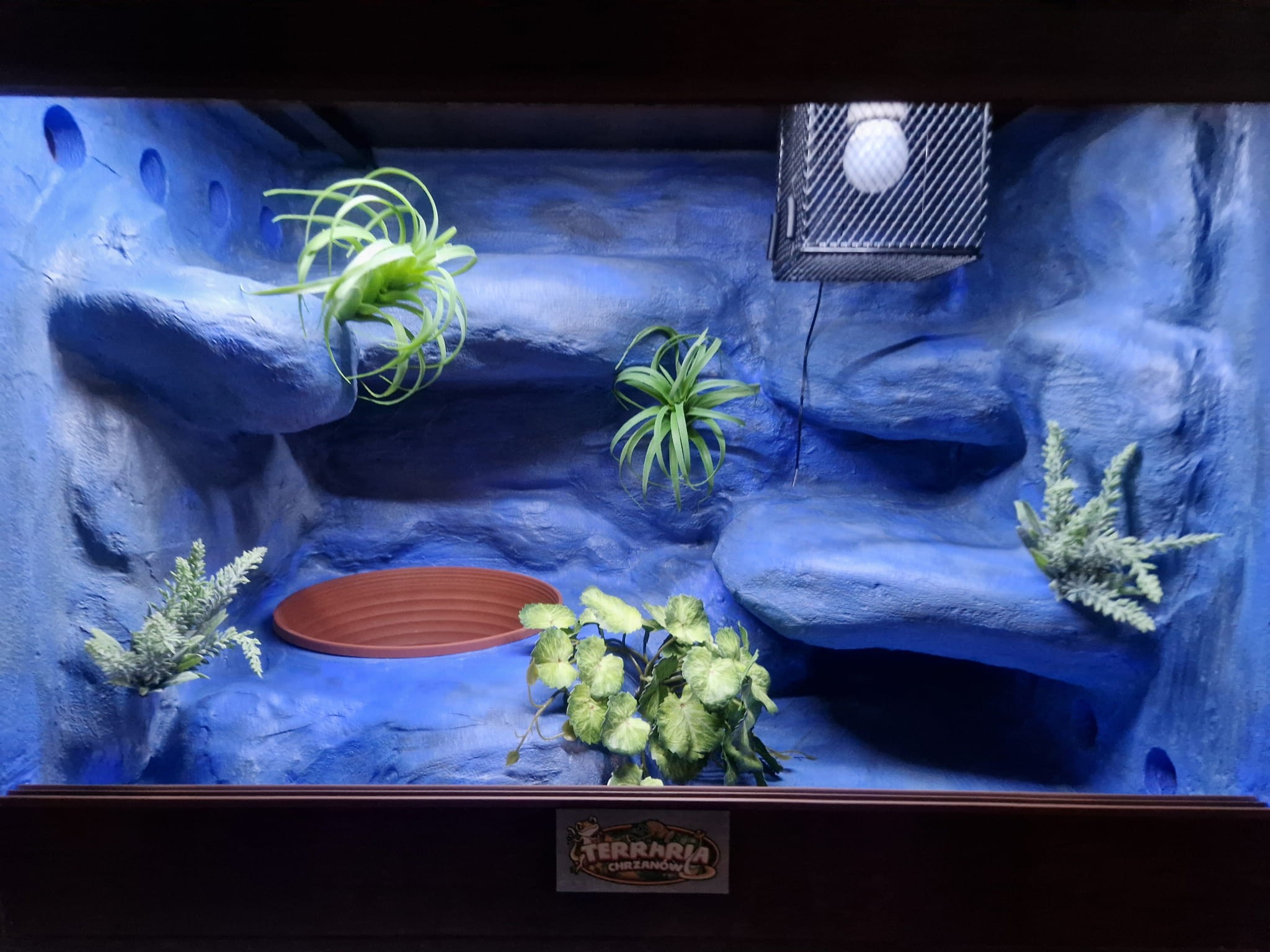Zdjęcia przedstawiają wykonane przez nas terraria na indywidualne zamówienie i mogą być wzorem do kolejnych prac. Terraria zamówione przez Państwa nie będą więc kopią jak te przedstawione poniżej - mogą być jednak podobne. Każdy zbiornik budujemy od podstaw. Kupujący ma możliwość wyboru układu skał (w miarę możliwości) oraz koloru tła terrarium.