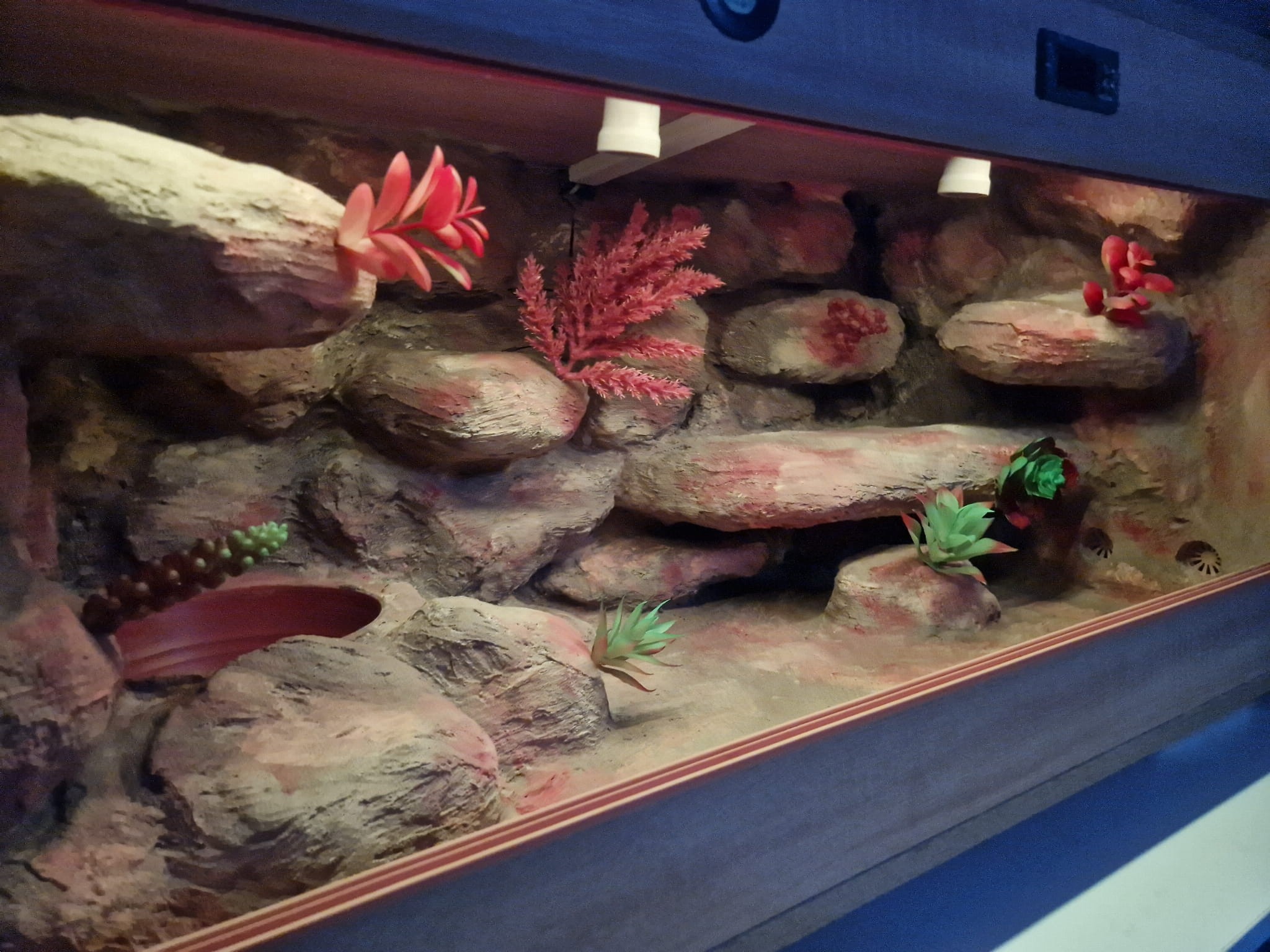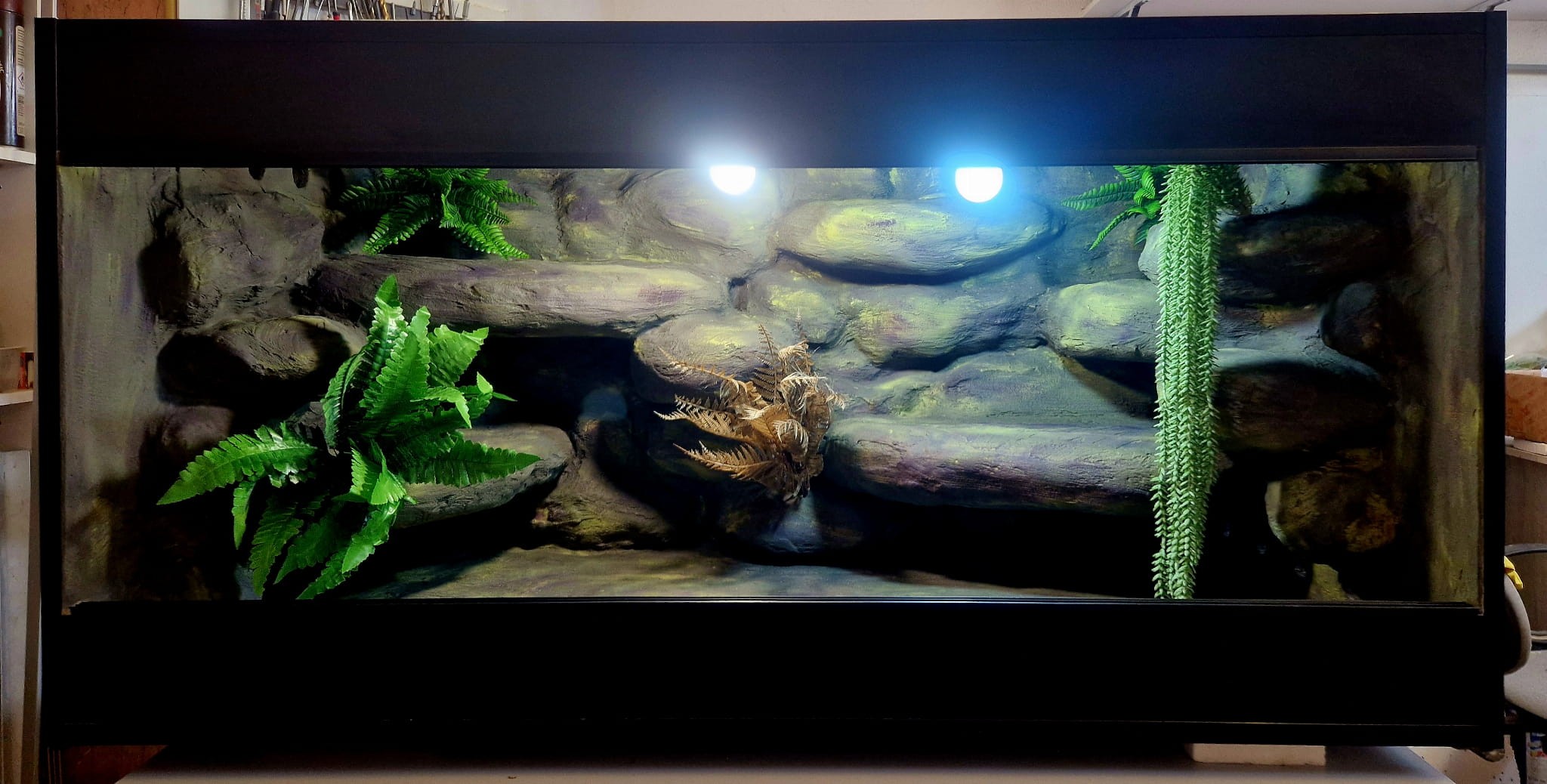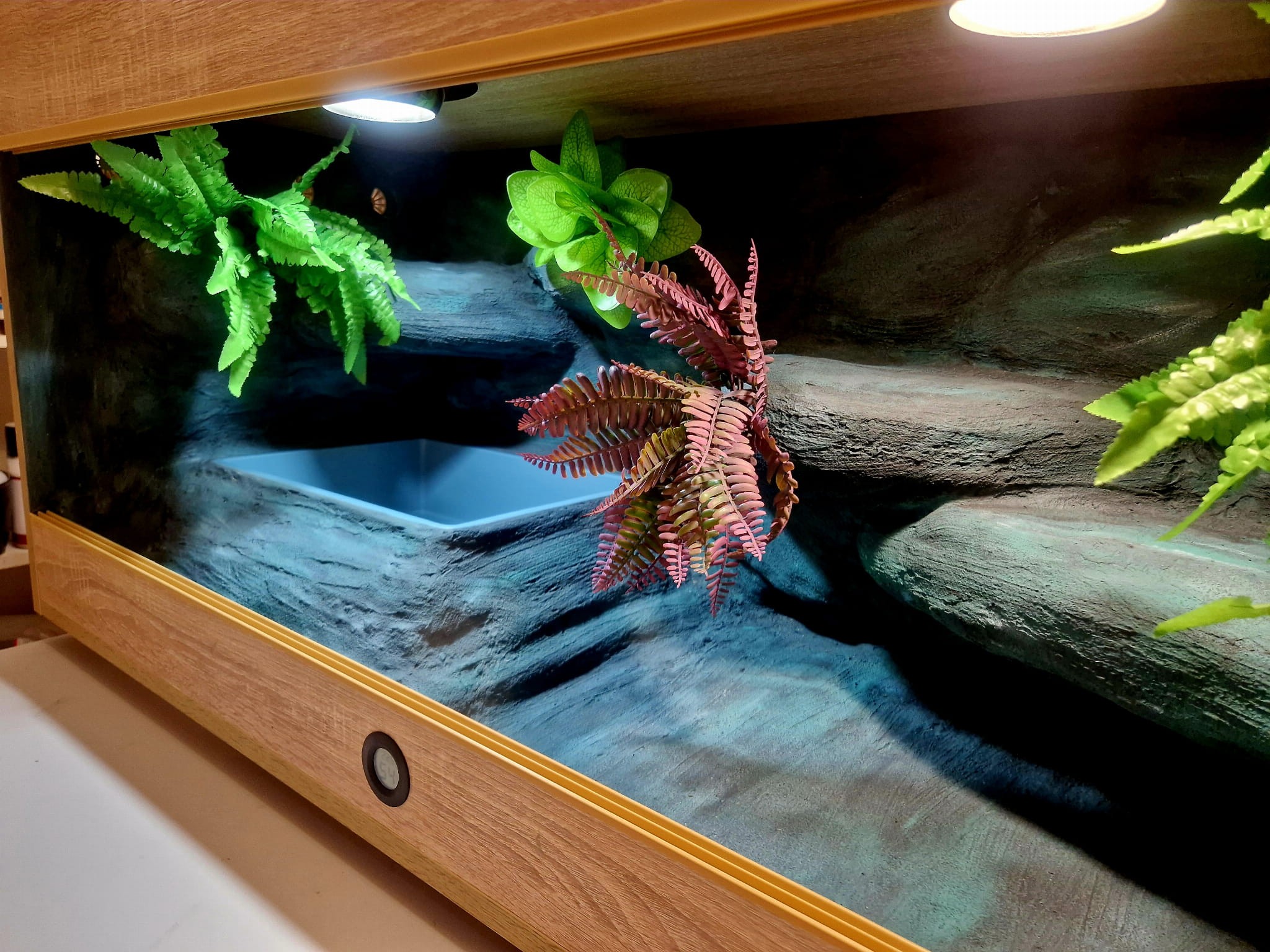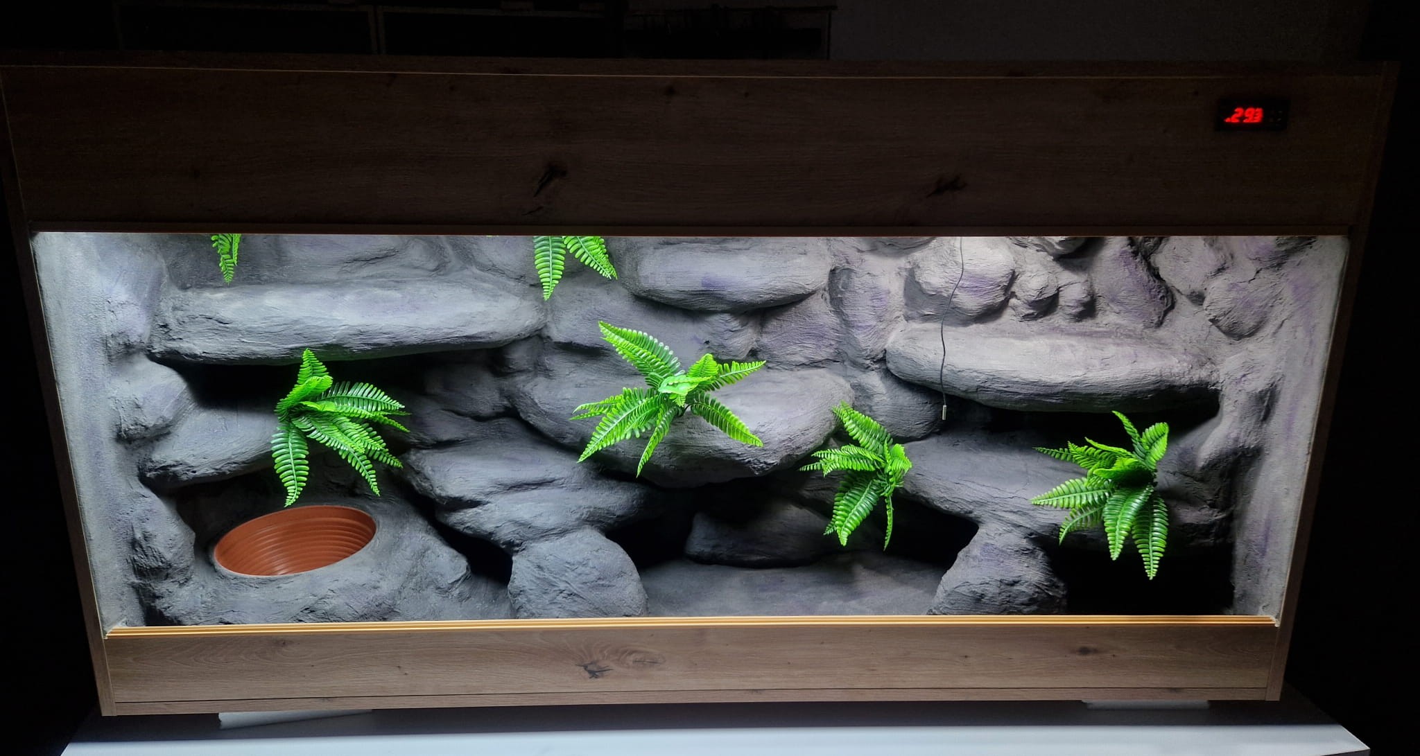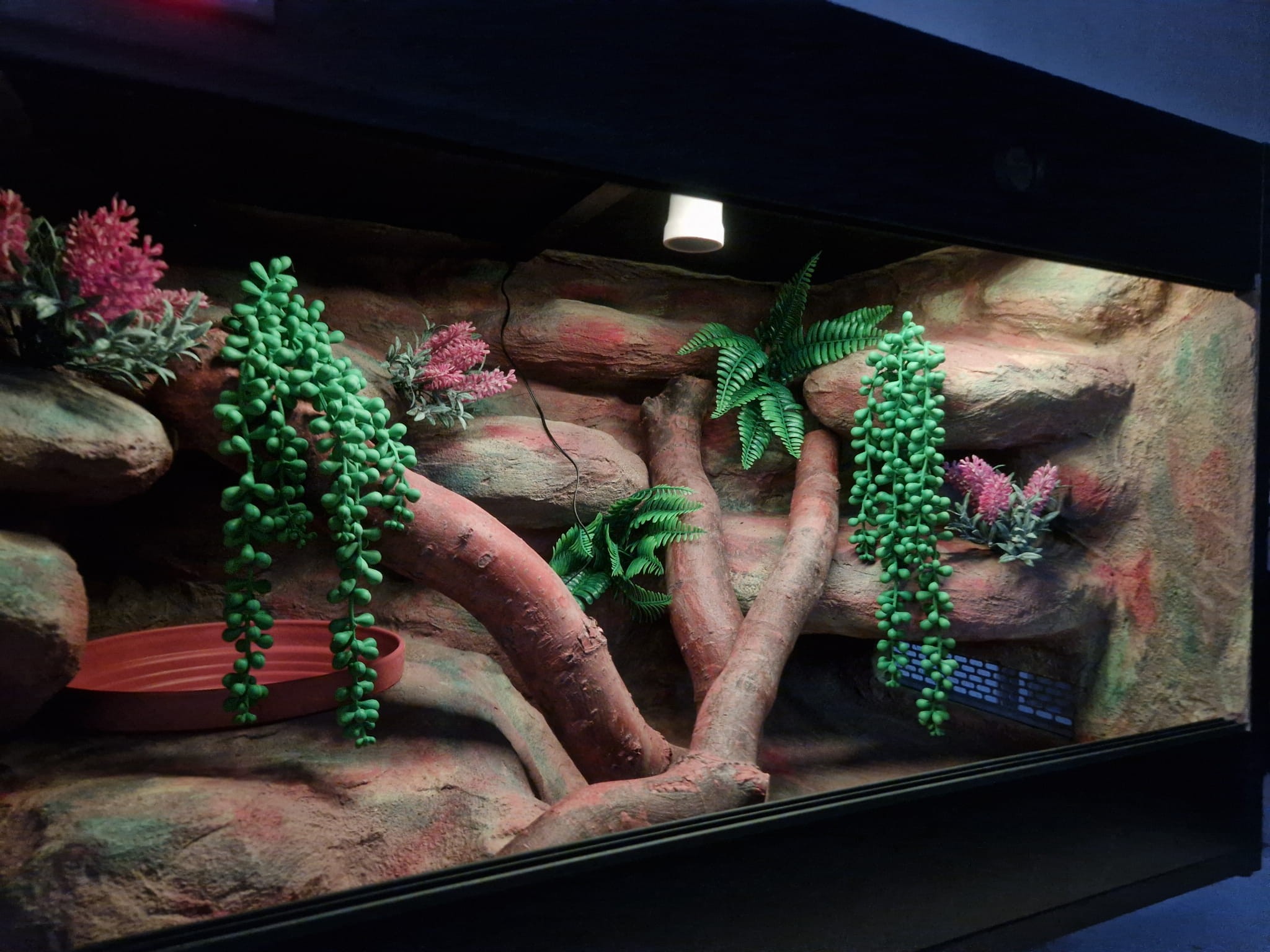 Zdjęcia przedstawiają wykonane przez nas terraria na indywidualne zamówienie i mogą być wzorem do kolejnych prac. Terraria zamówione przez Państwa nie będą więc kopią jak te przedstawione poniżej - mogą być jednak podobne. Każdy zbiornik budujemy od podstaw. Kupujący ma możliwość wyboru układu skał (w miarę możliwości) oraz koloru tła terrarium.