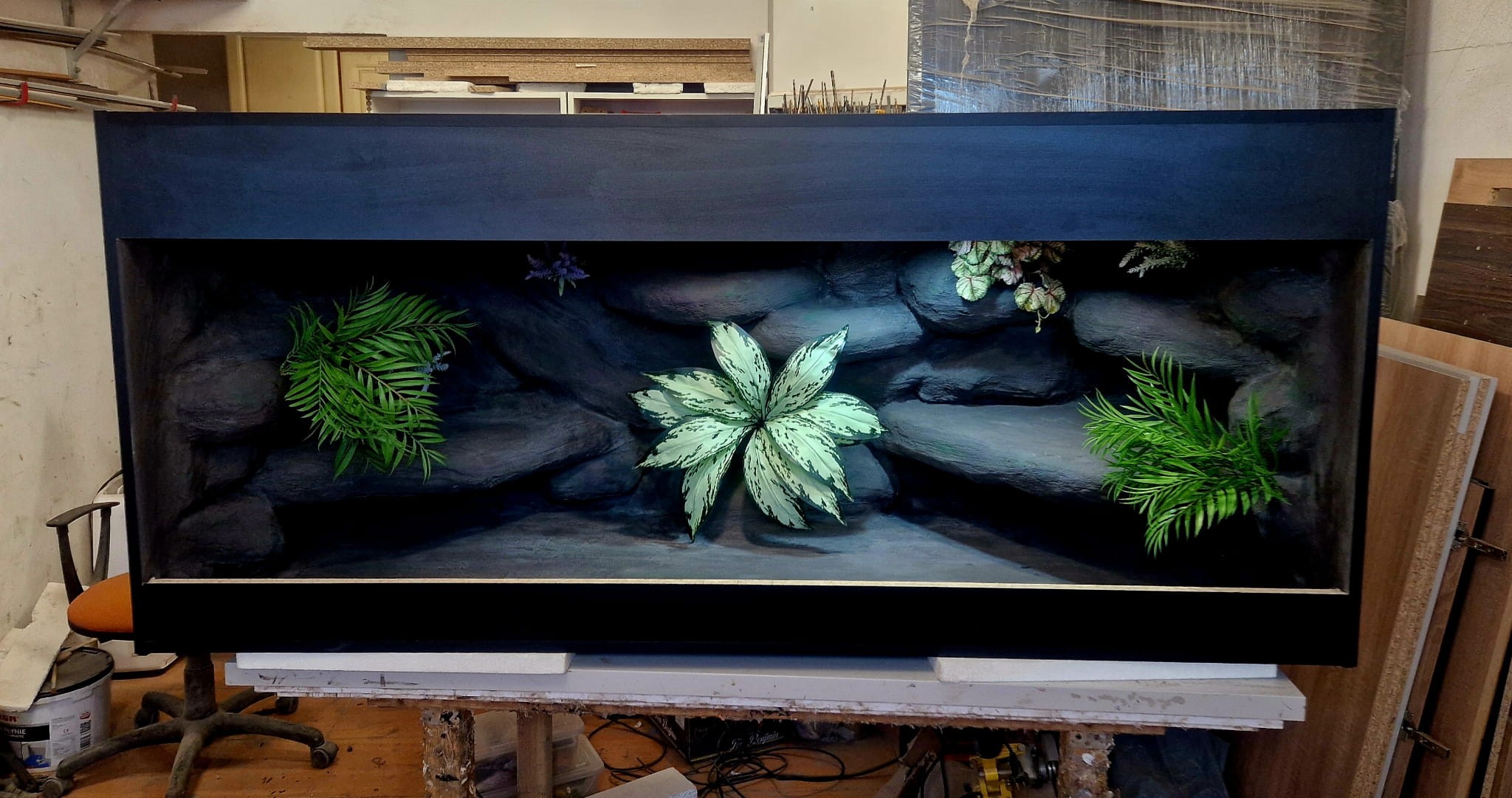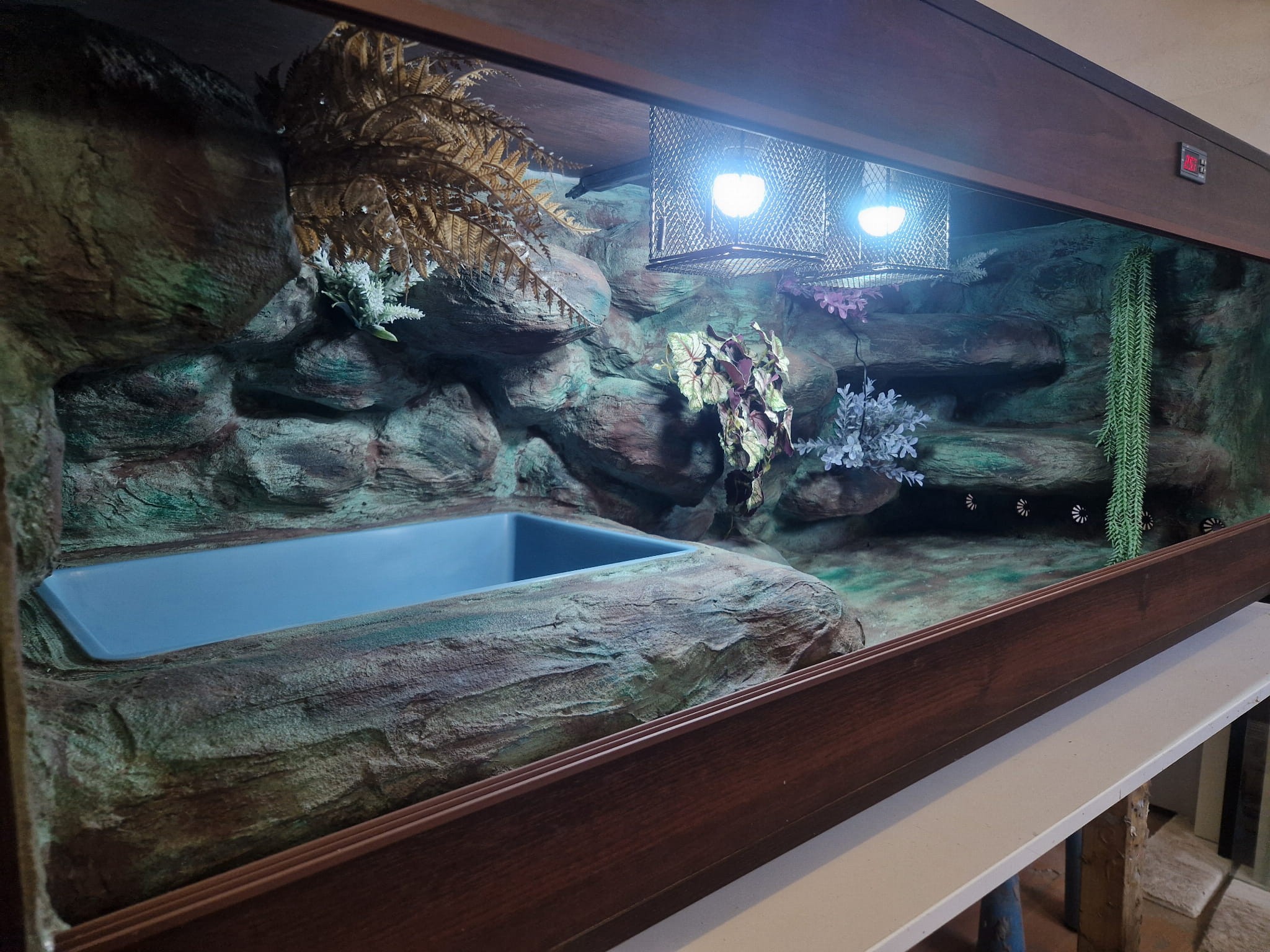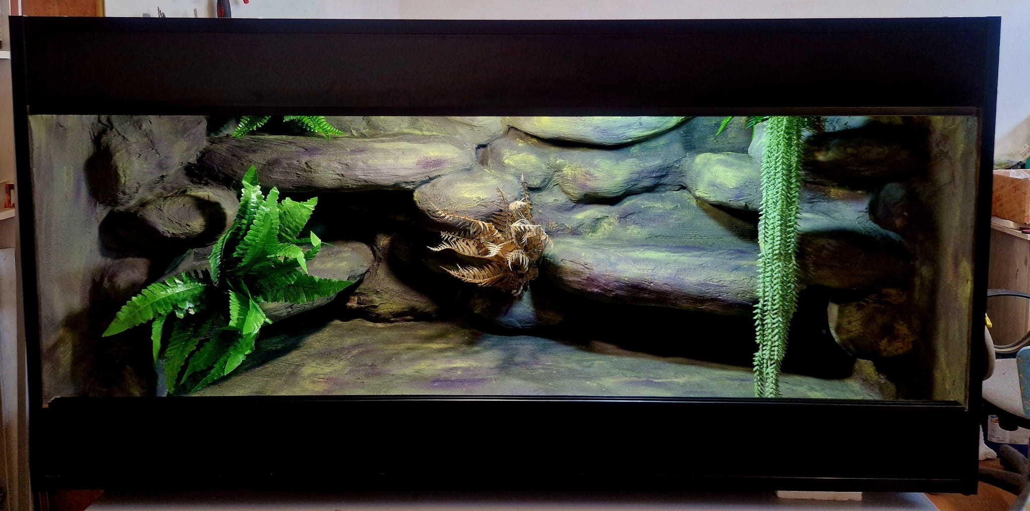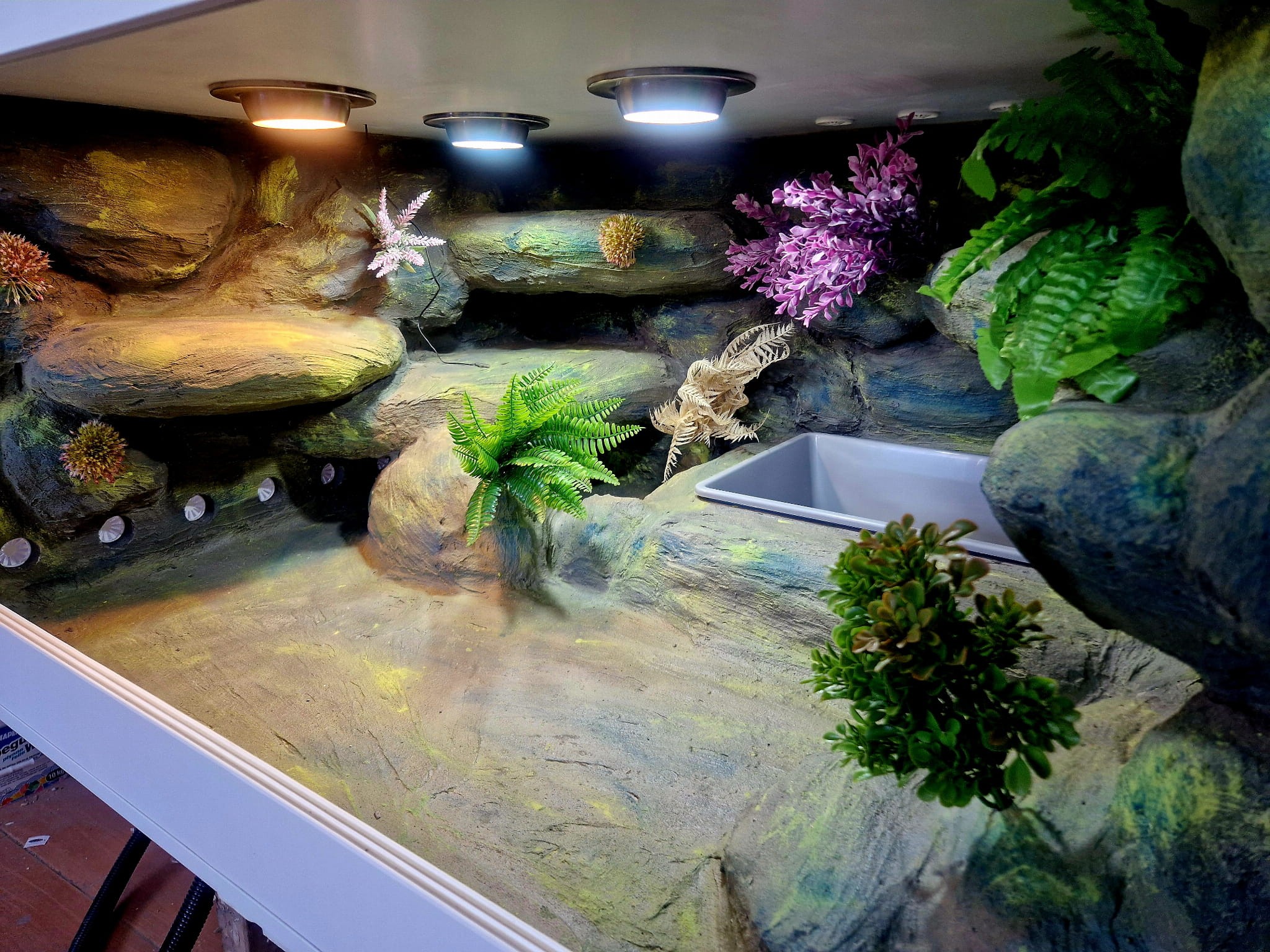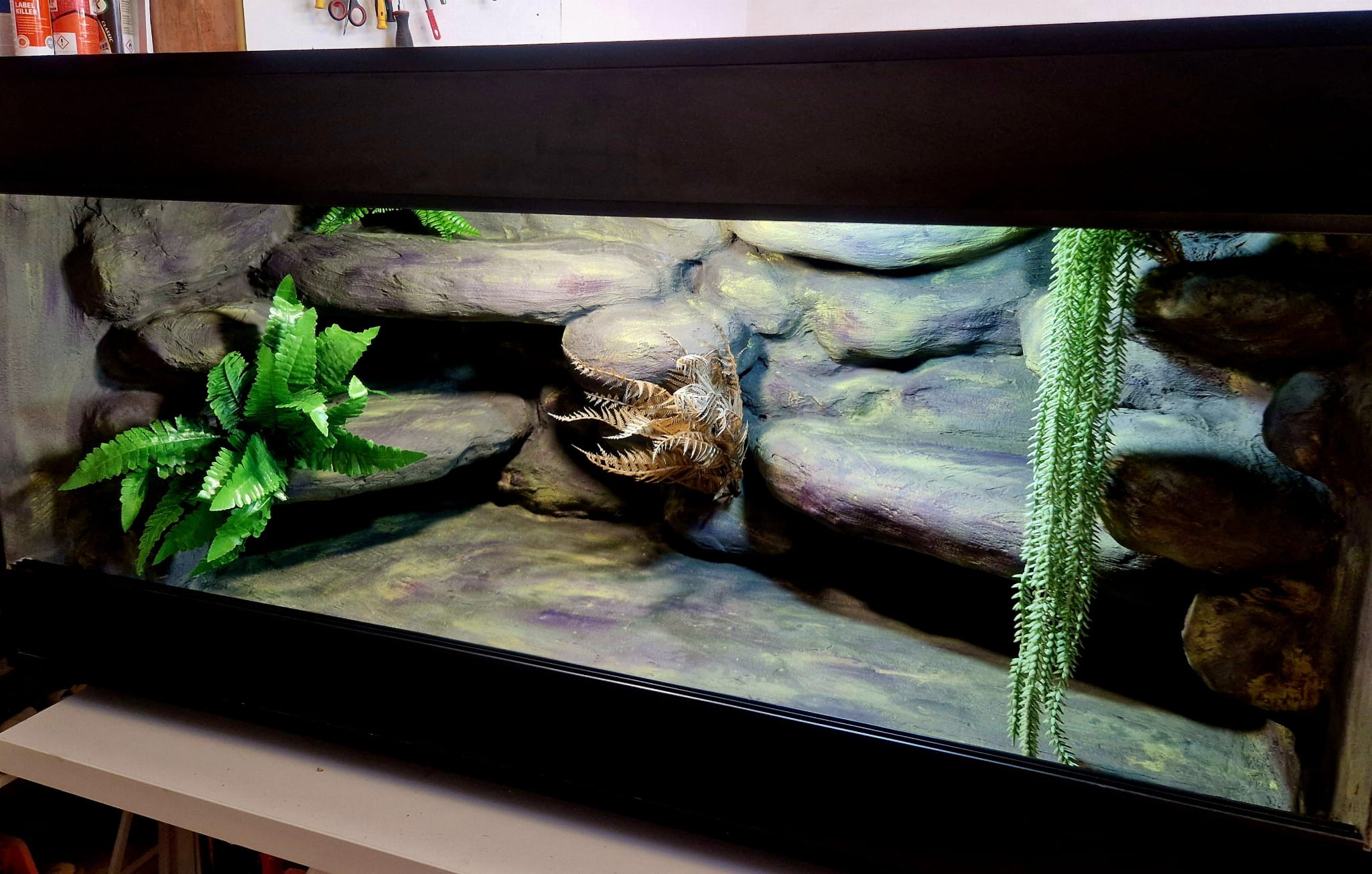 Zdjęcia przedstawiają wykonane przez nas terraria na indywidualne zamówienie i mogą być wzorem do kolejnych prac. Terraria zamówione przez Państwa nie będą więc kopią jak te przedstawione poniżej - mogą być jednak podobne. Każdy zbiornik budujemy od podstaw. Kupujący ma możliwość wyboru układu skał (w miarę możliwości) oraz koloru tła terrarium.