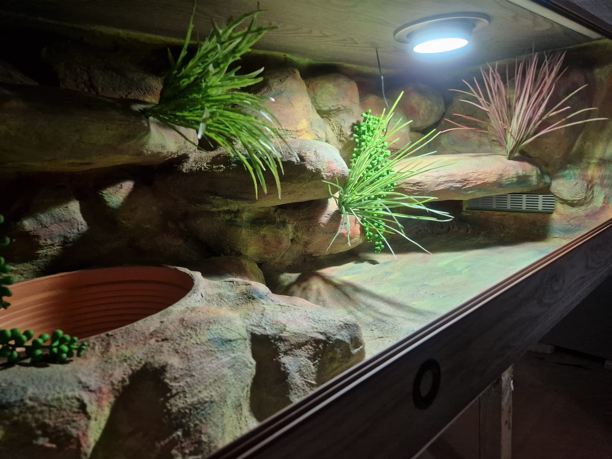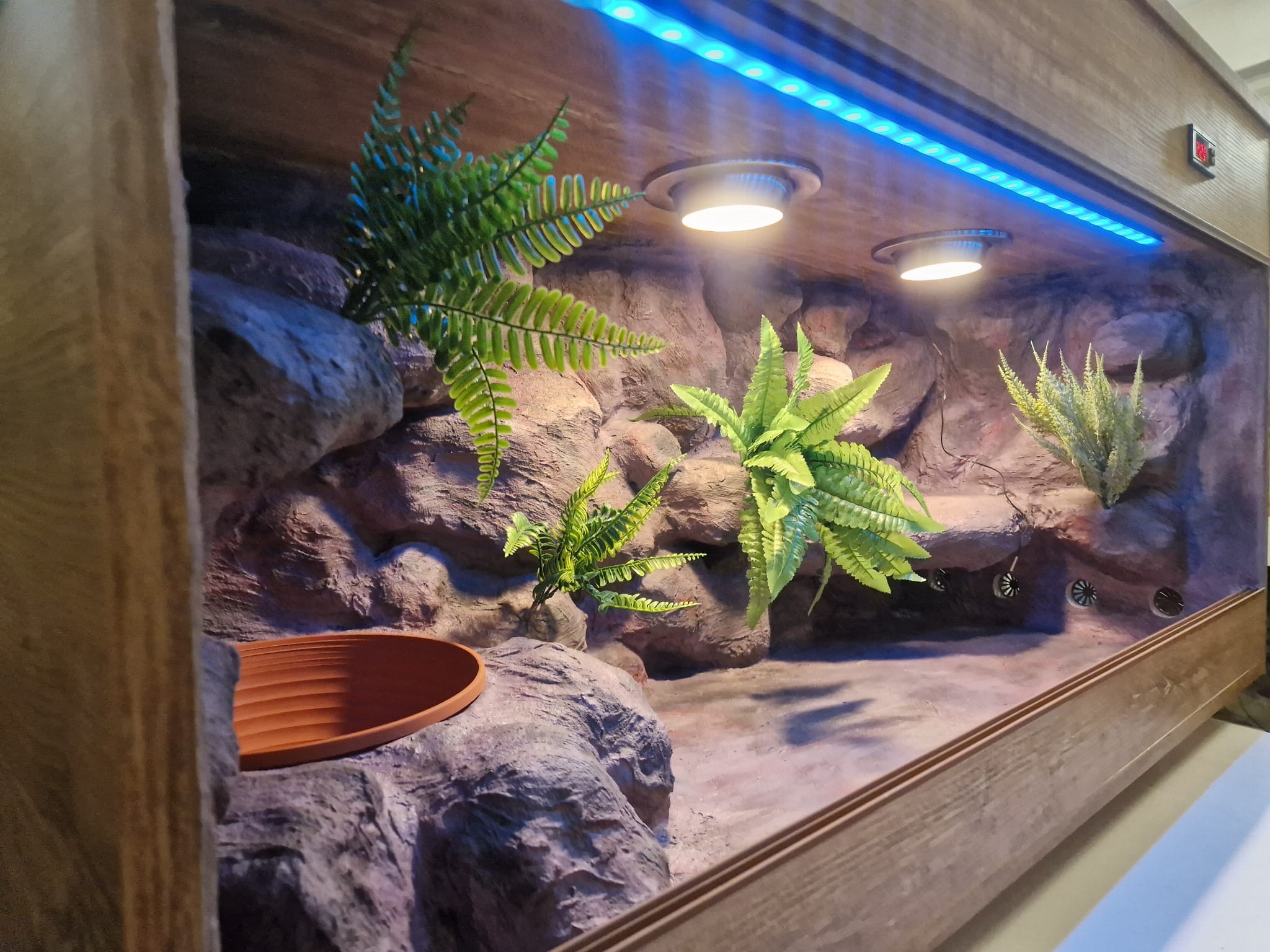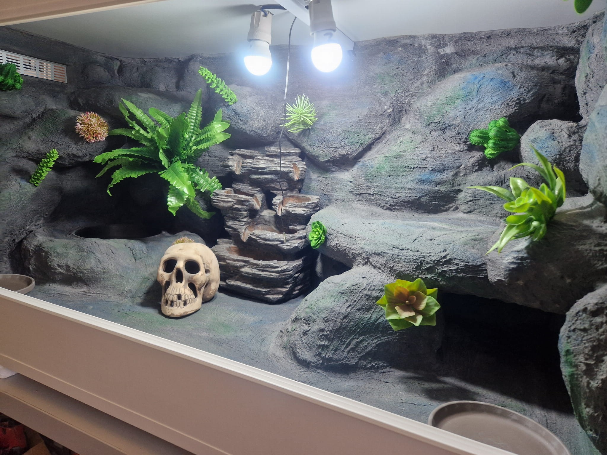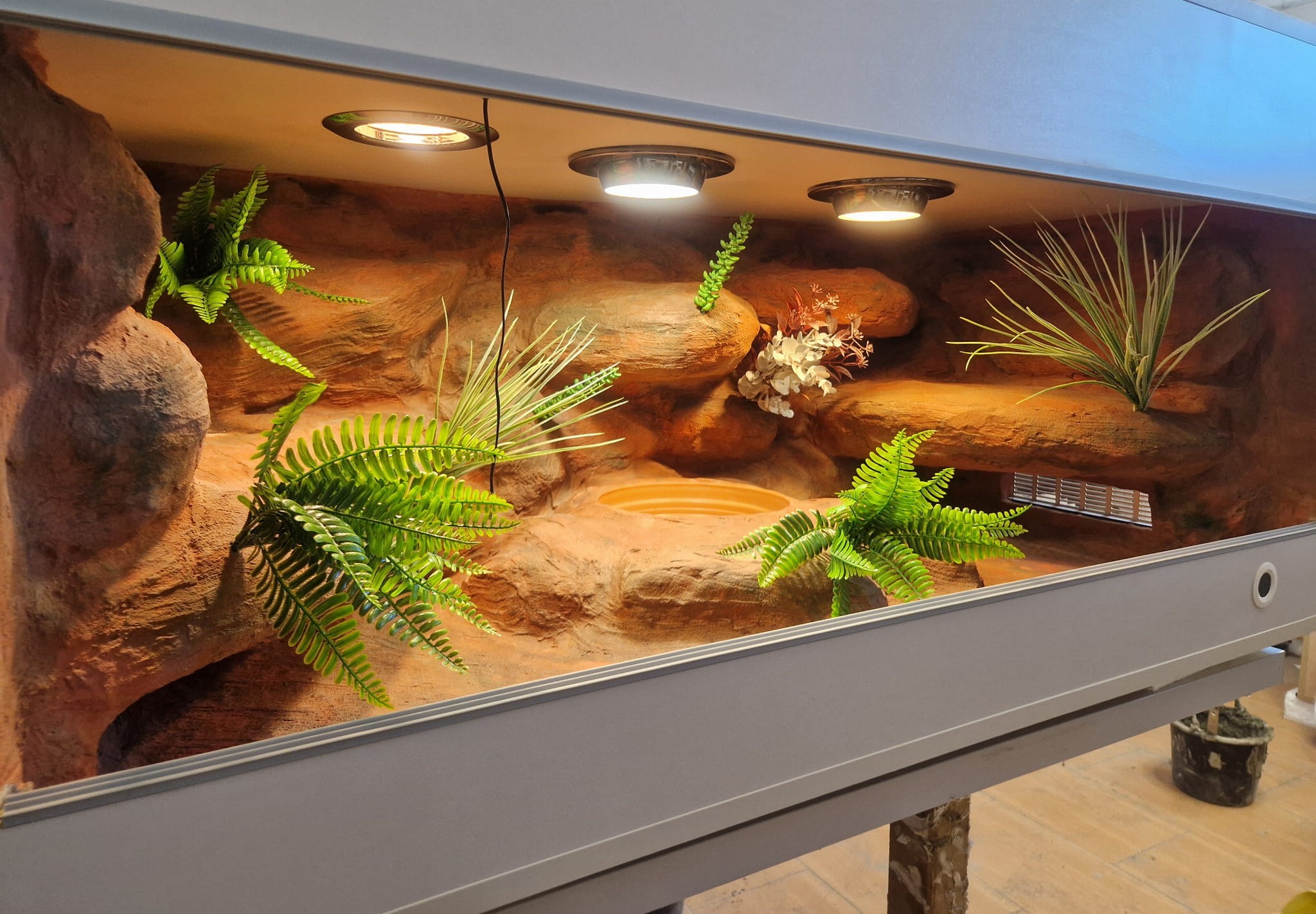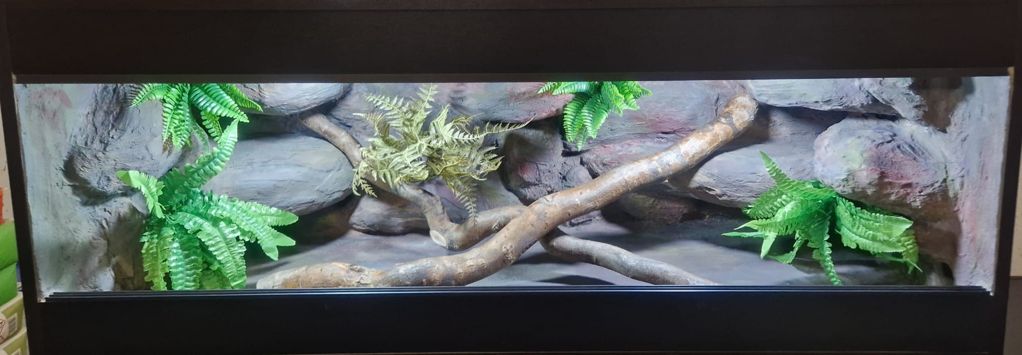 Zdjęcia przedstawiają wykonane przez nas terraria na indywidualne zamówienie i mogą być wzorem do kolejnych prac. Terraria zamówione przez Państwa nie będą więc kopią jak te przedstawione poniżej - mogą być jednak podobne. Każdy zbiornik budujemy od podstaw. Kupujący ma możliwość wyboru układu skał (w miarę możliwości) oraz koloru tła terrarium.