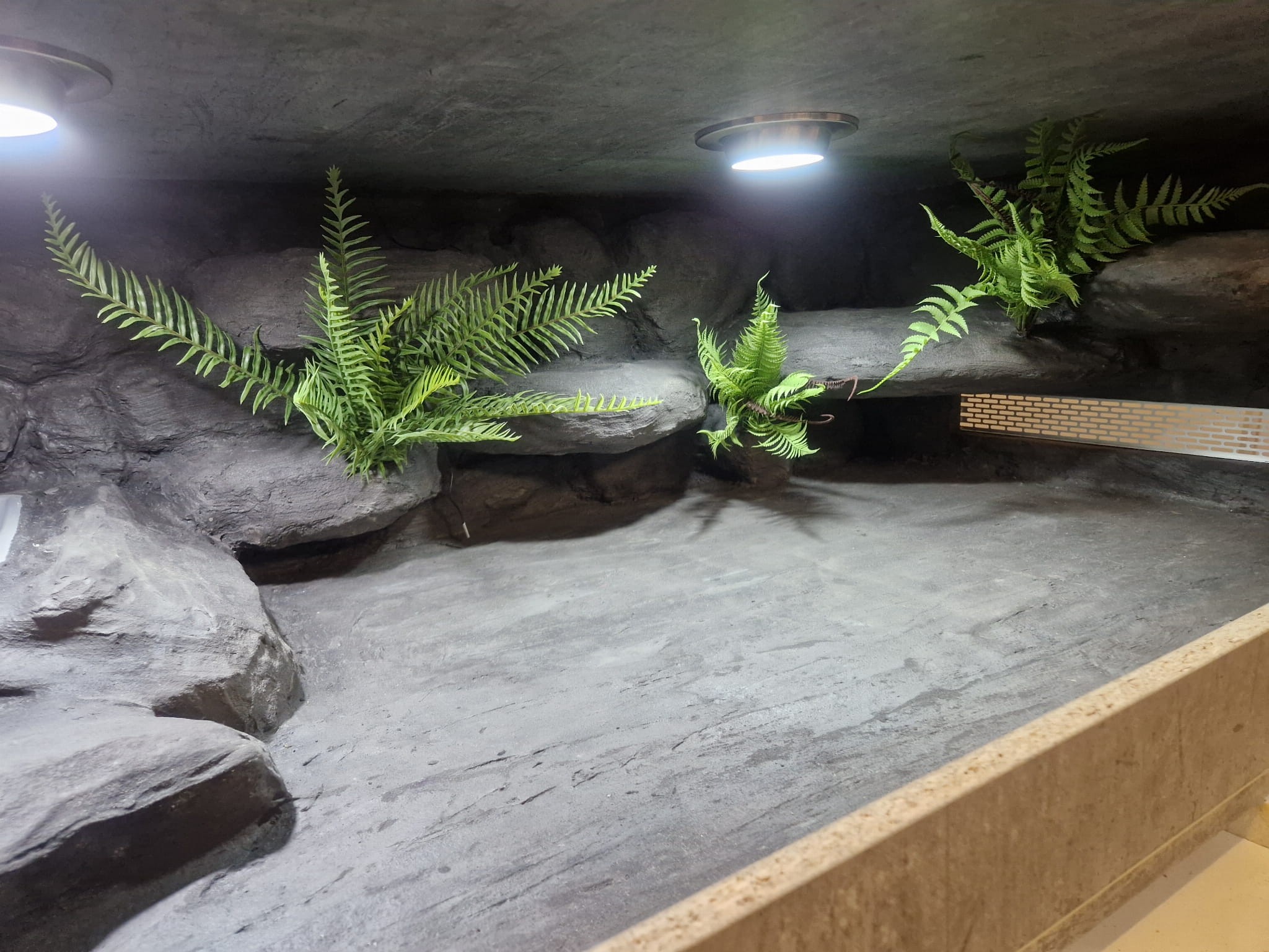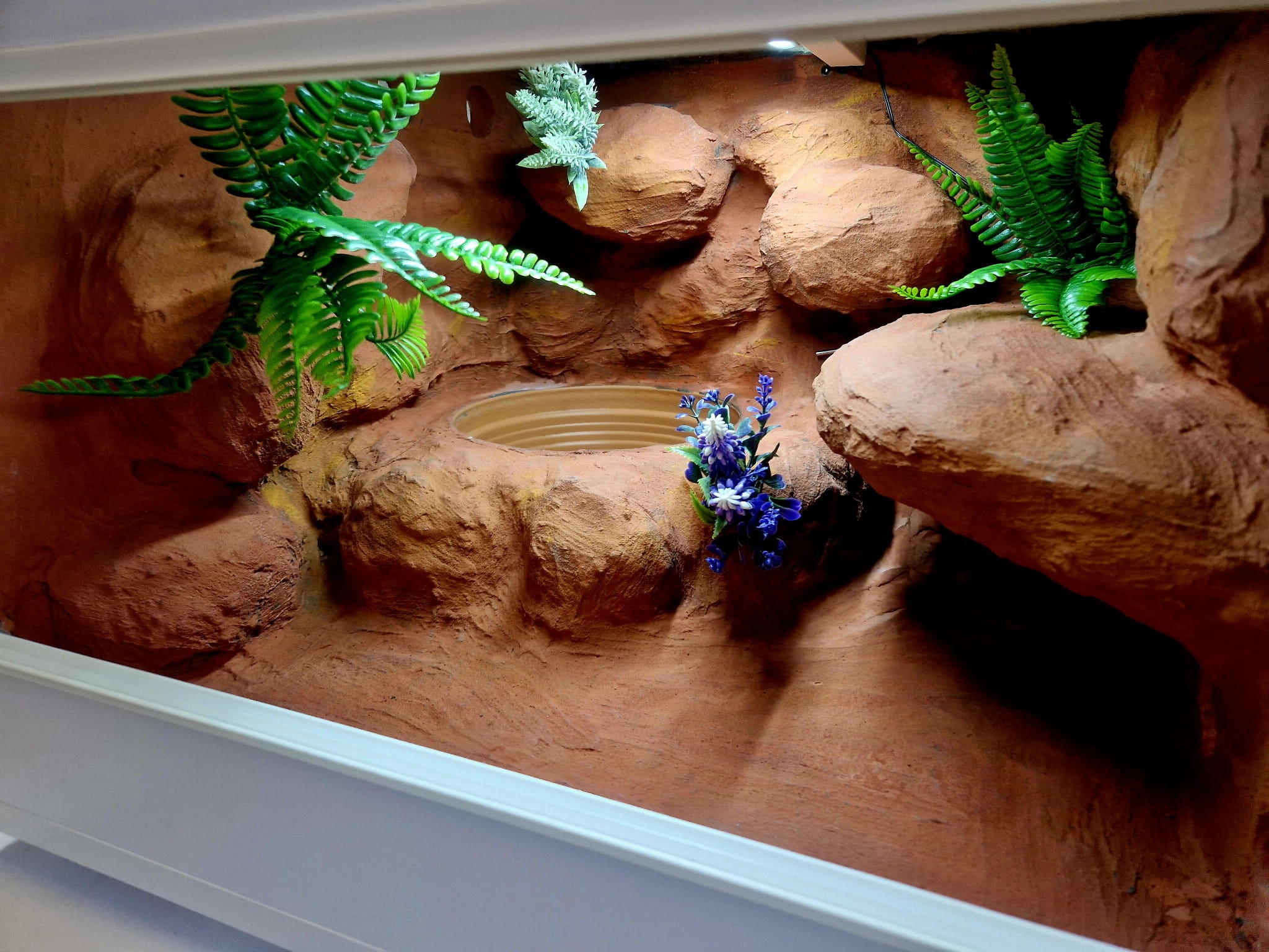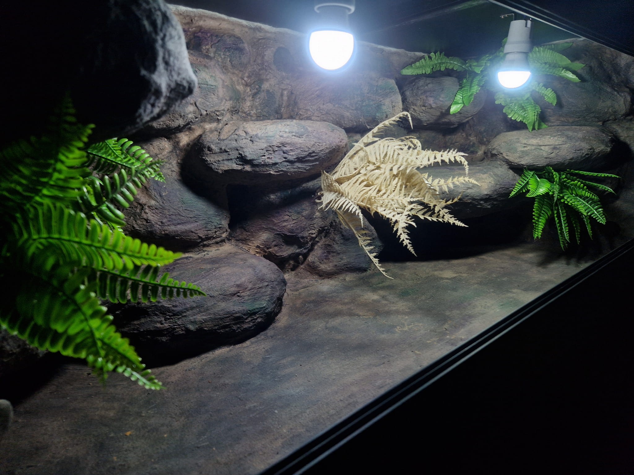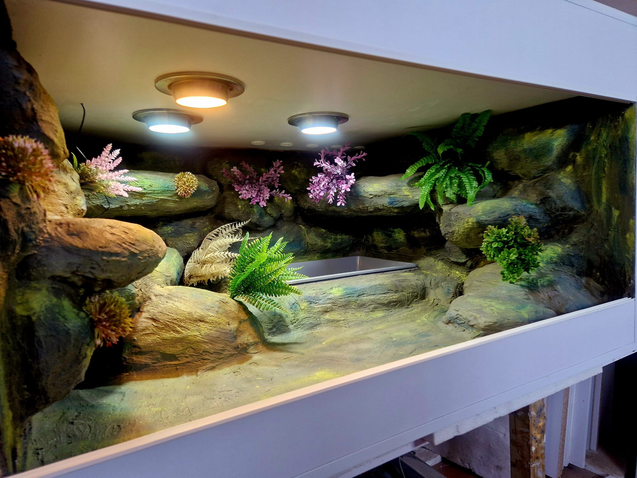 Zdjęcia przedstawiają wykonane przez nas terraria na indywidualne zamówienie i mogą być wzorem do kolejnych prac. Terraria zamówione przez Państwa nie będą więc kopią jak te przedstawione poniżej - mogą być jednak podobne. Każdy zbiornik budujemy od podstaw. Kupujący ma możliwość wyboru układu skał (w miarę możliwości) oraz koloru tła terrarium.