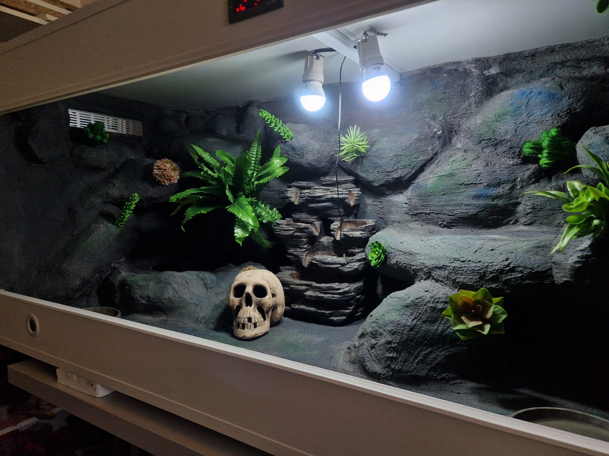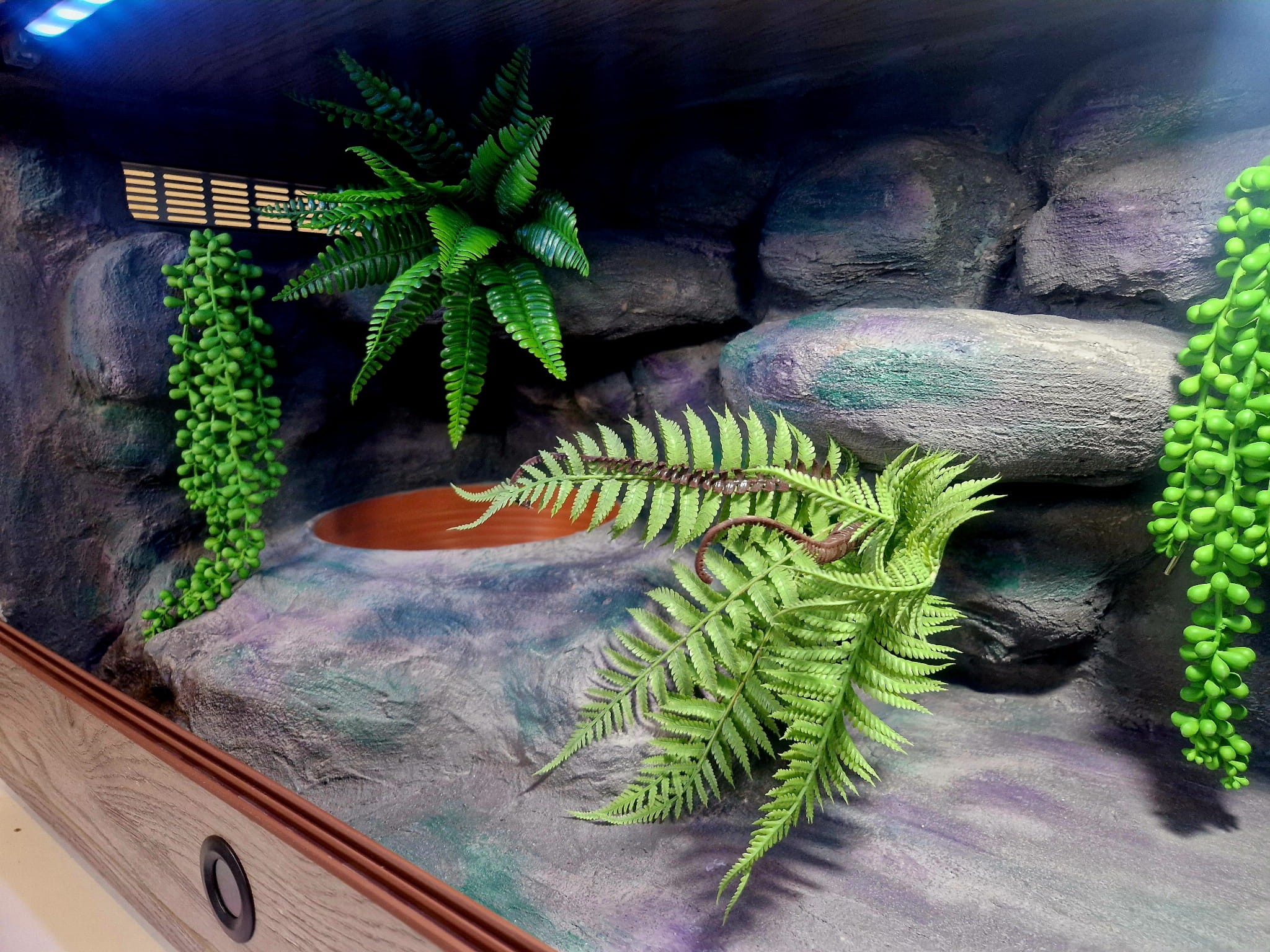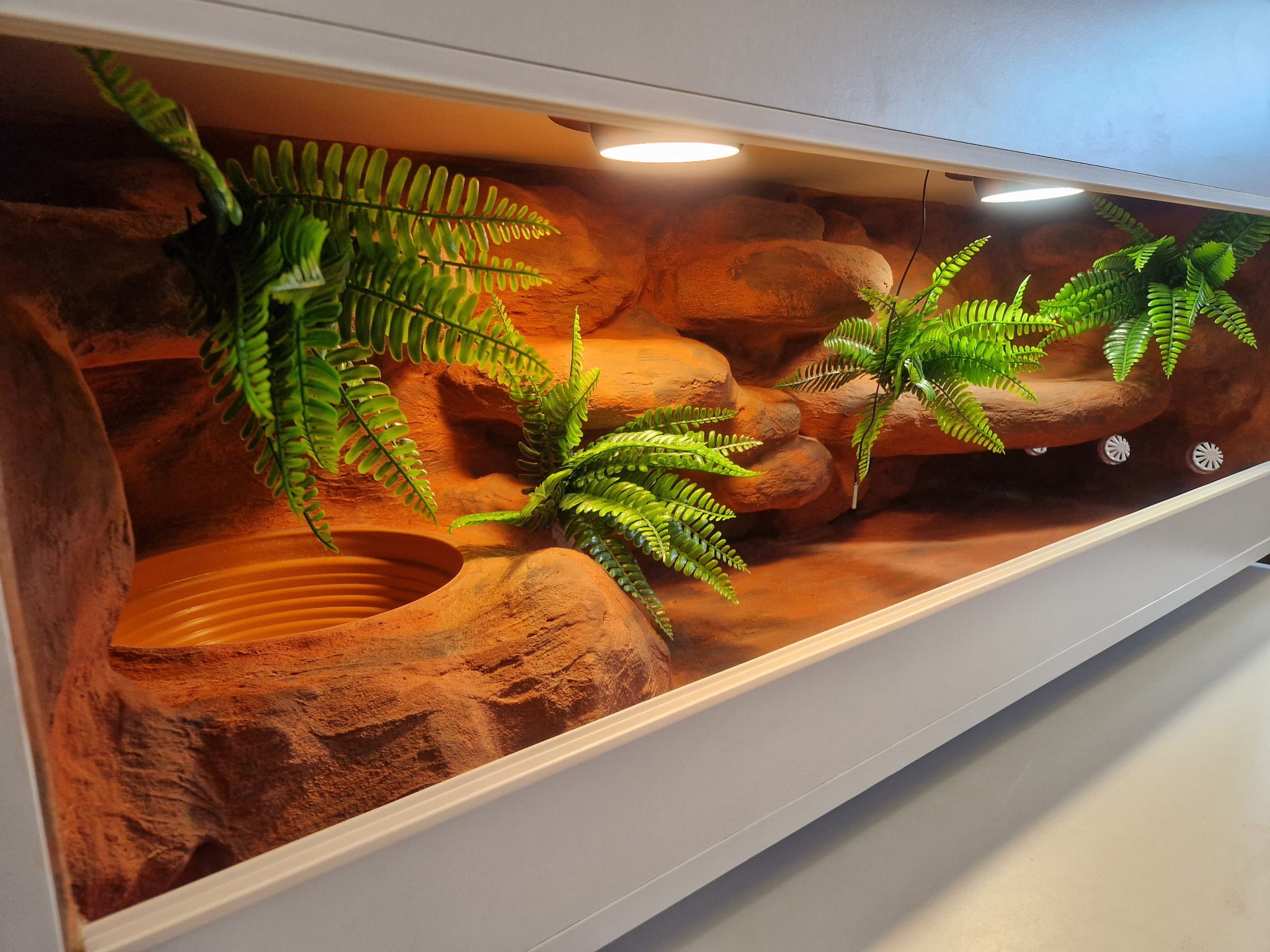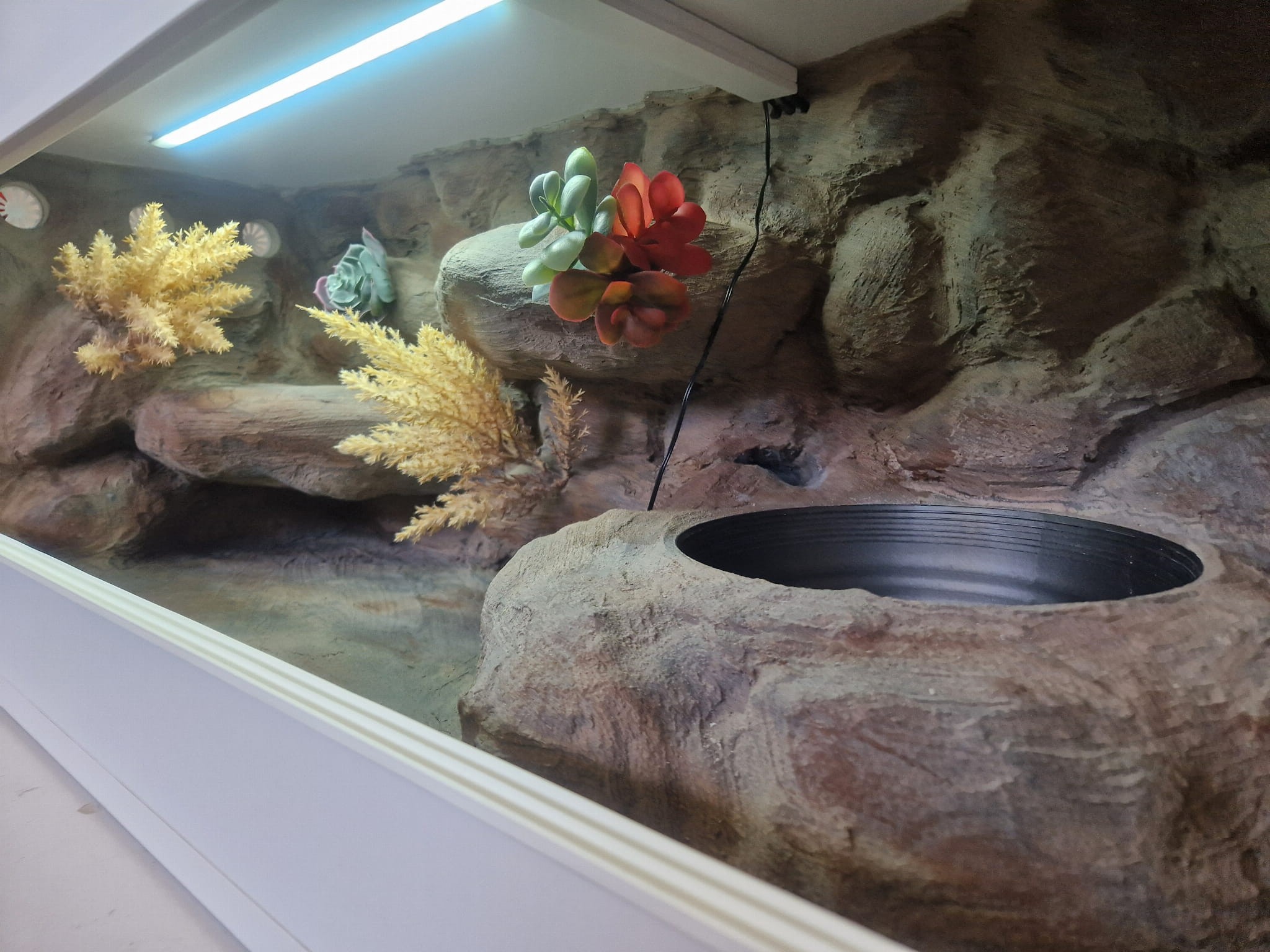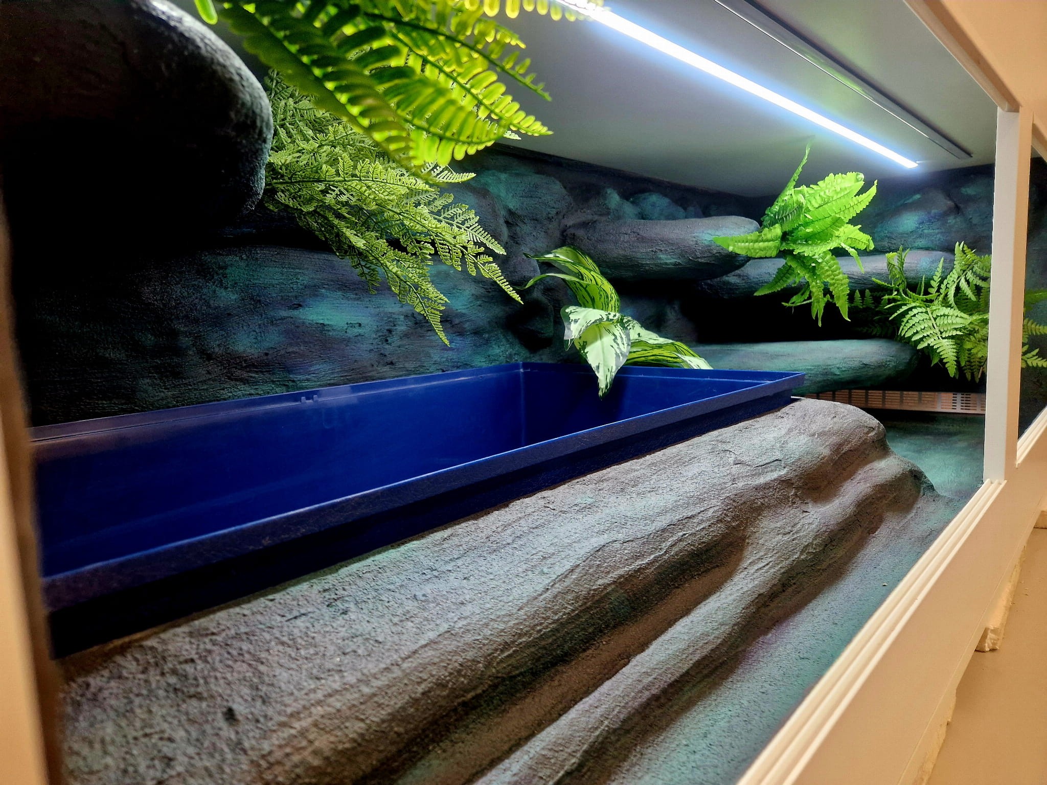 Zdjęcia przedstawiają wykonane przez nas terraria na indywidualne zamówienie i mogą być wzorem do kolejnych prac. Terraria zamówione przez Państwa nie będą więc kopią jak te przedstawione poniżej - mogą być jednak podobne. Każdy zbiornik budujemy od podstaw. Kupujący ma możliwość wyboru układu skał (w miarę możliwości) oraz koloru tła terrarium.