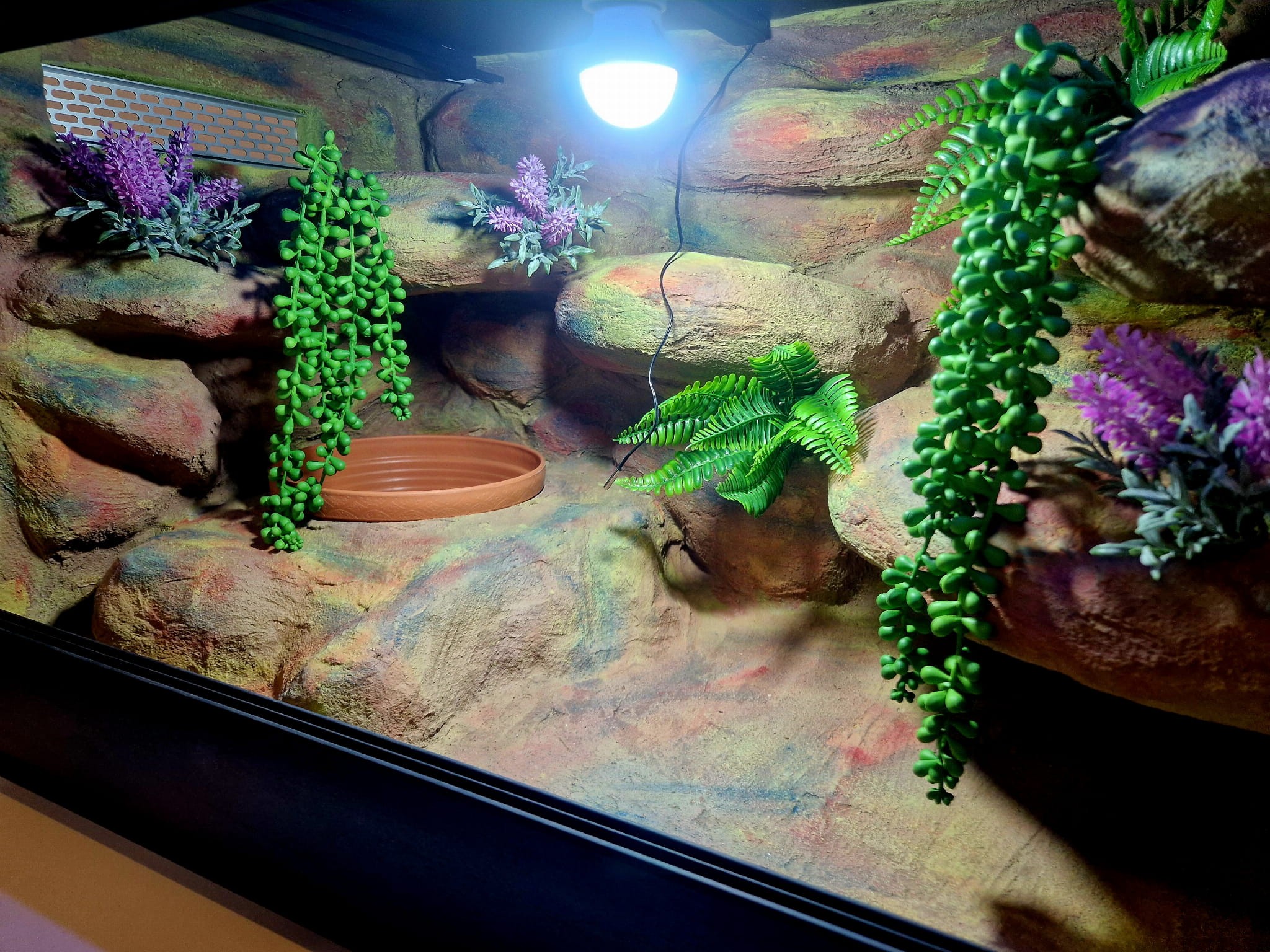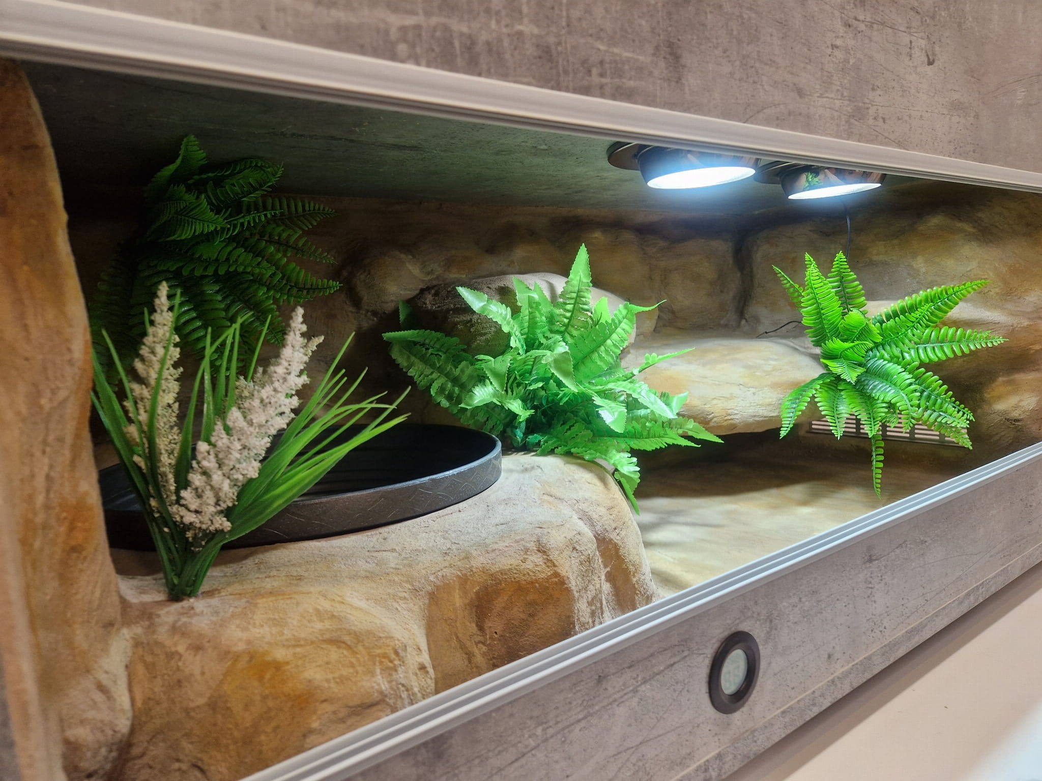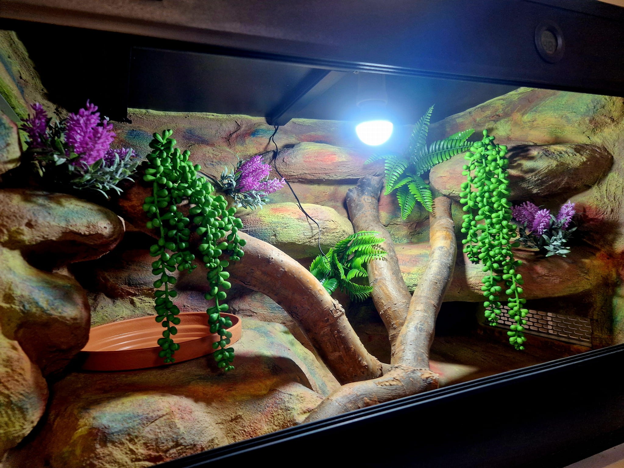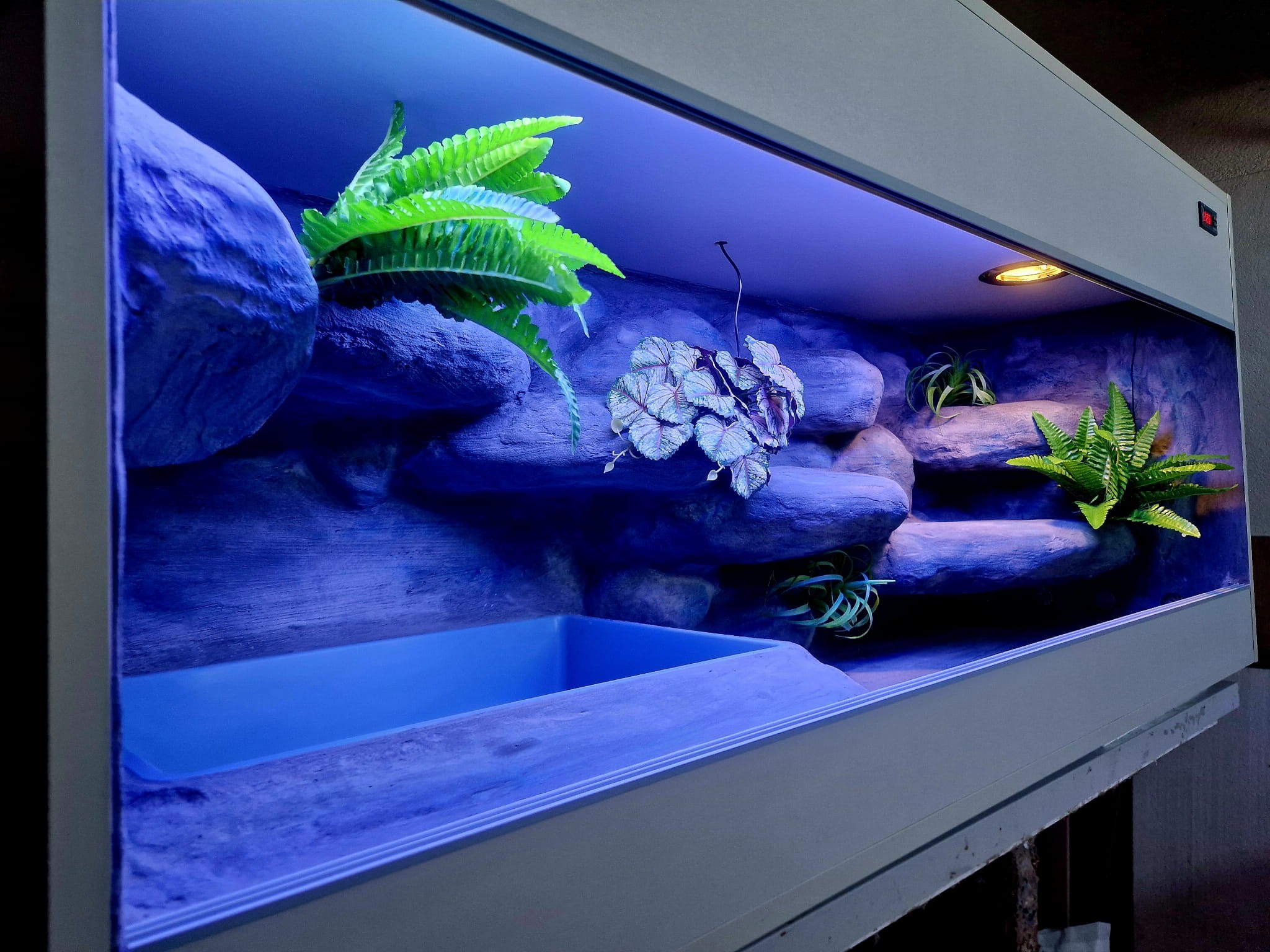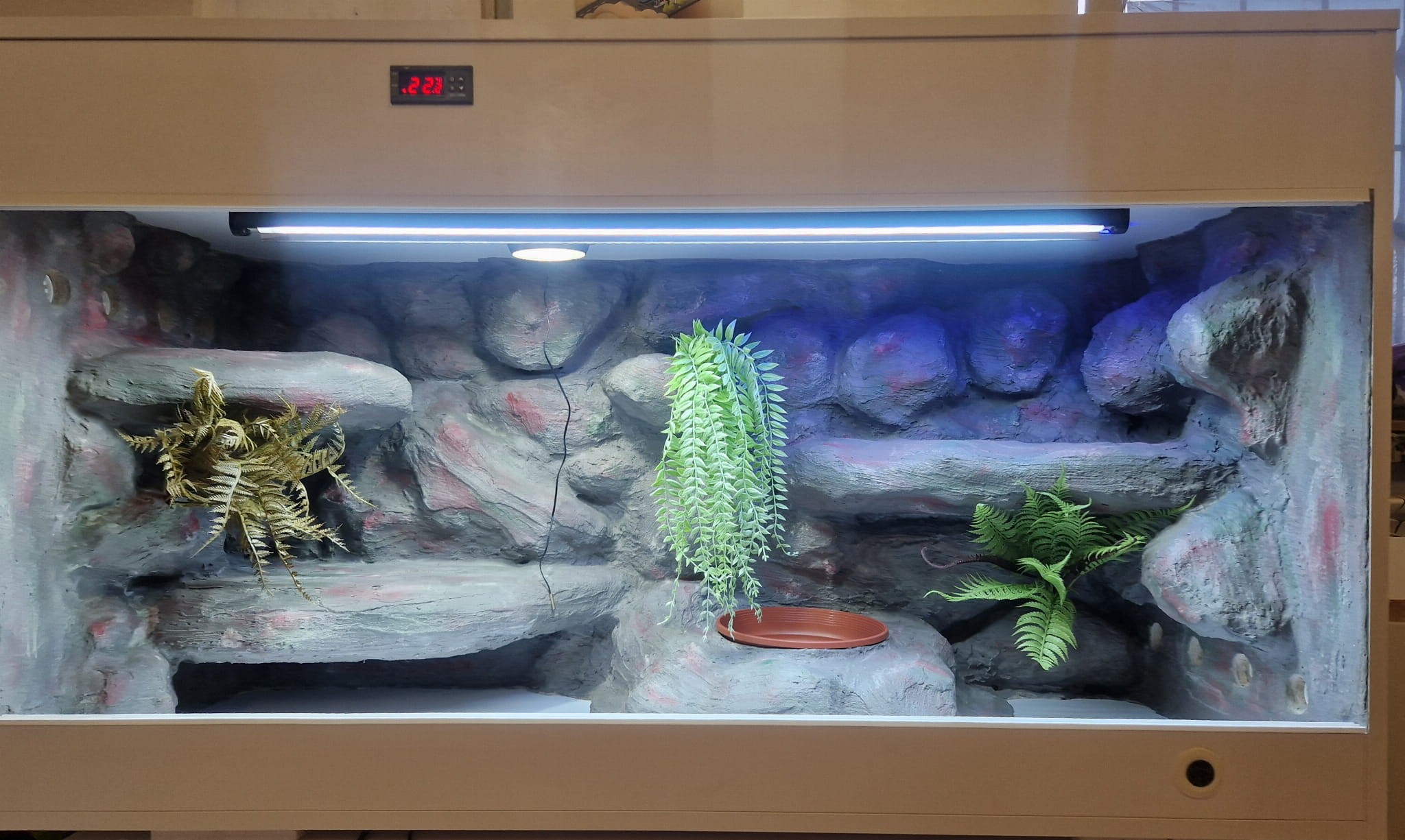 Zdjęcia przedstawiają wykonane przez nas terraria na indywidualne zamówienie i mogą być wzorem do kolejnych prac. Terraria zamówione przez Państwa nie będą więc kopią jak te przedstawione poniżej - mogą być jednak podobne. Każdy zbiornik budujemy od podstaw. Kupujący ma możliwość wyboru układu skał (w miarę możliwości) oraz koloru tła terrarium.