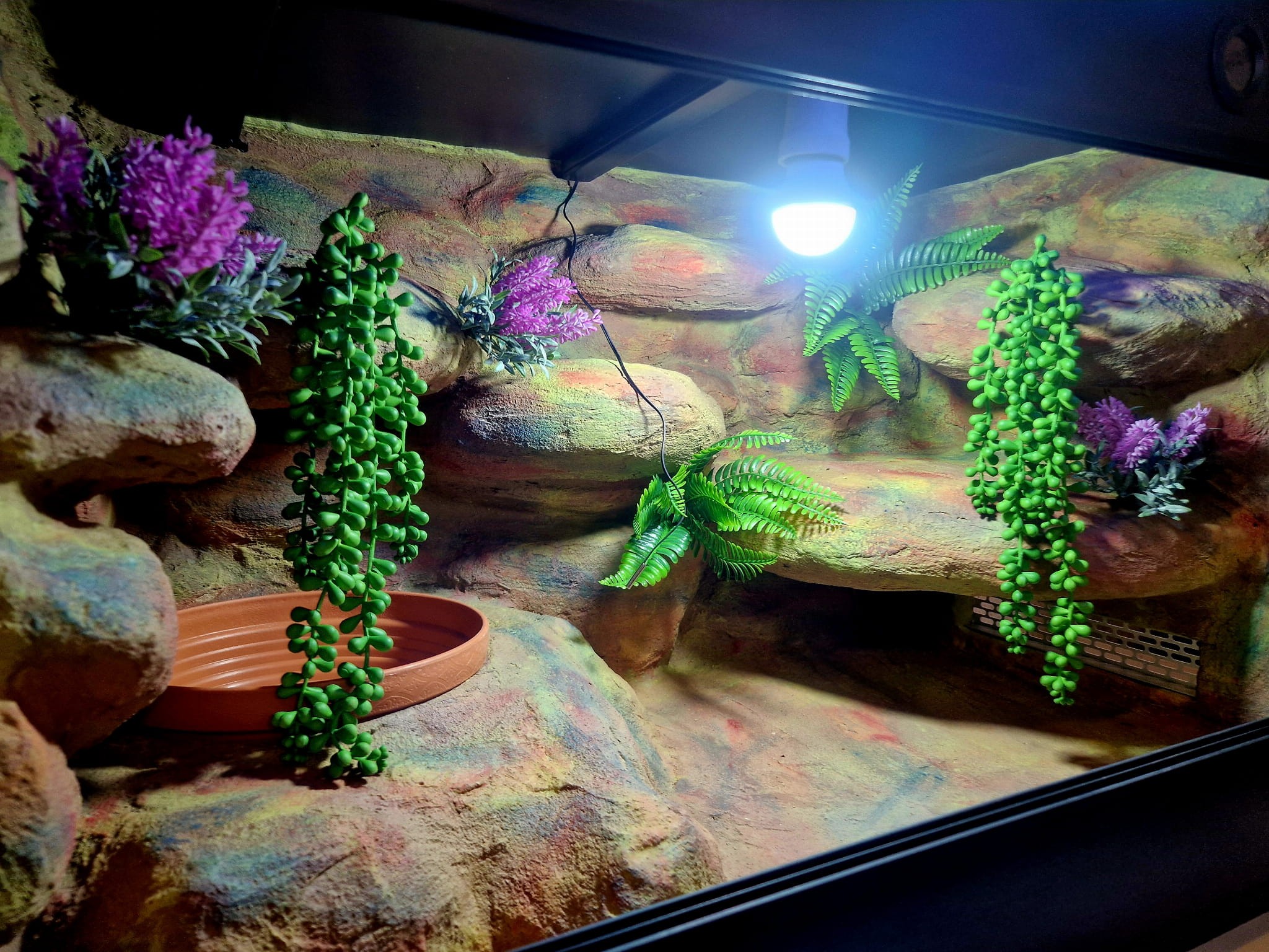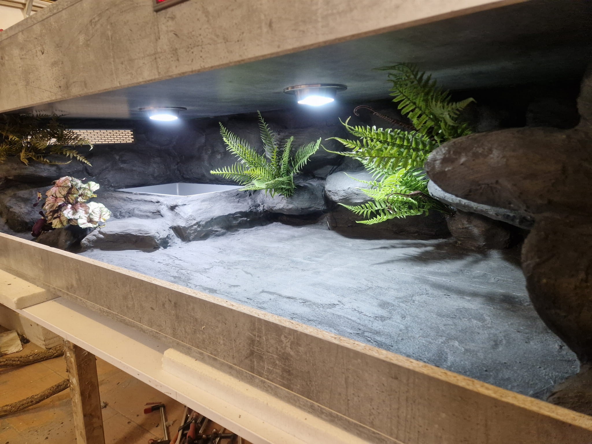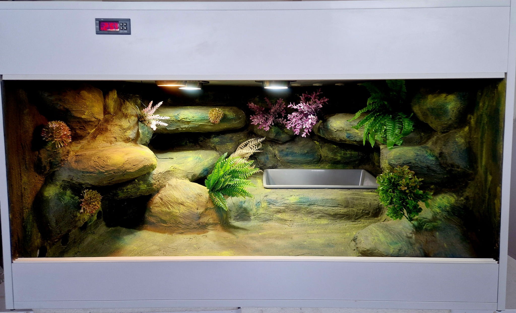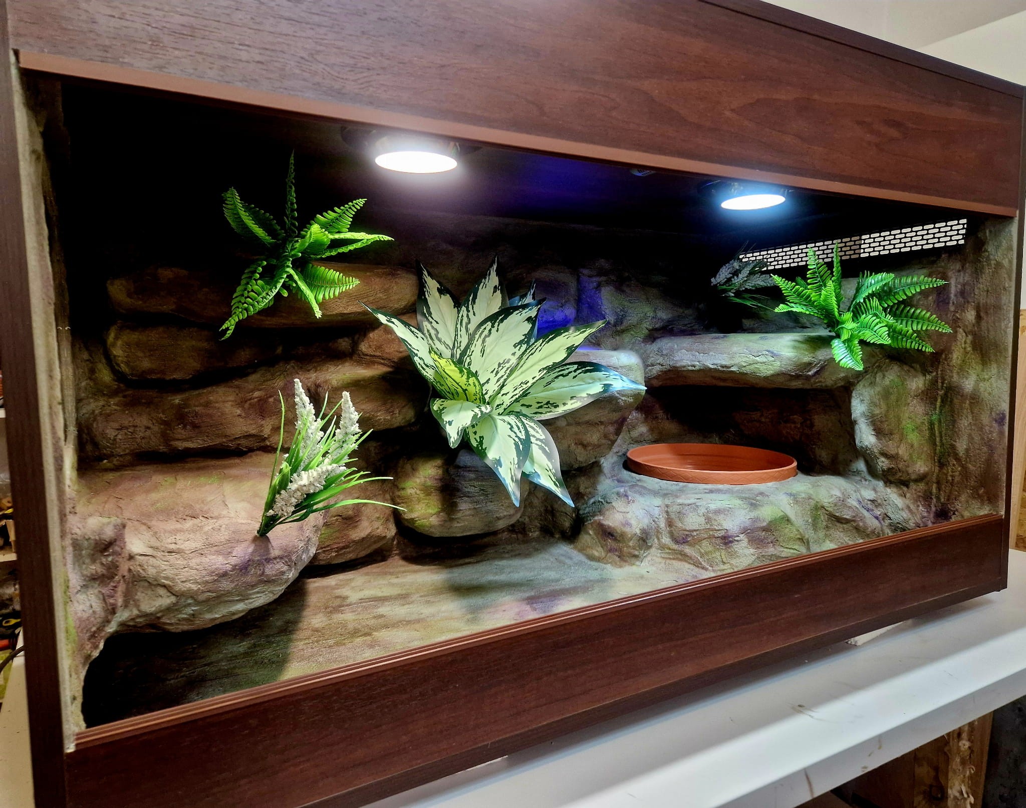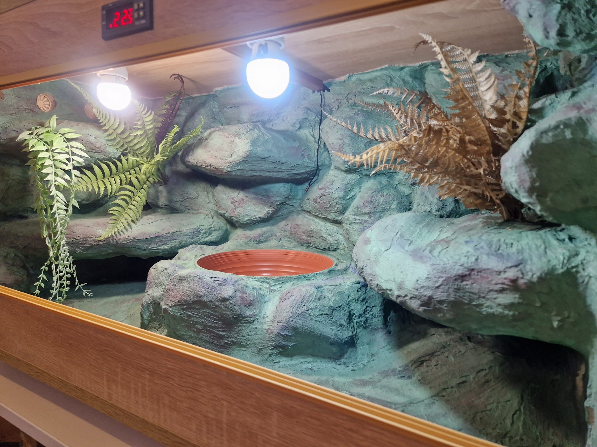Zdjęcia przedstawiają wykonane przez nas terraria na indywidualne zamówienie i mogą być wzorem do kolejnych prac. Terraria zamówione przez Państwa nie będą więc kopią jak te przedstawione poniżej - mogą być jednak podobne. Każdy zbiornik budujemy od podstaw. Kupujący ma możliwość wyboru układu skał (w miarę możliwości) oraz koloru tła terrarium.