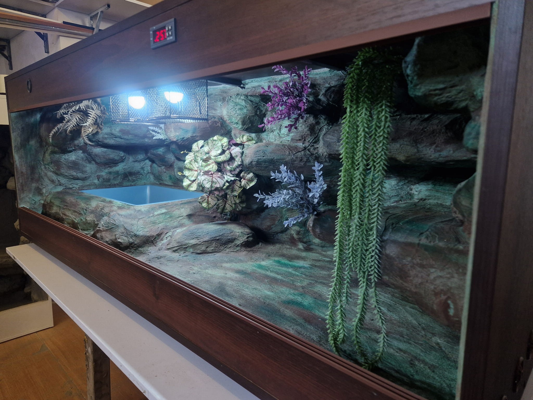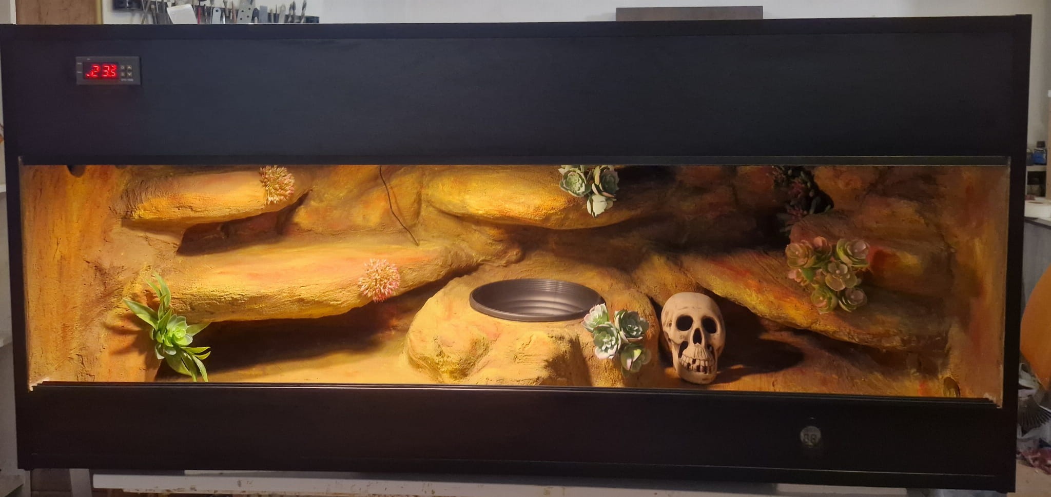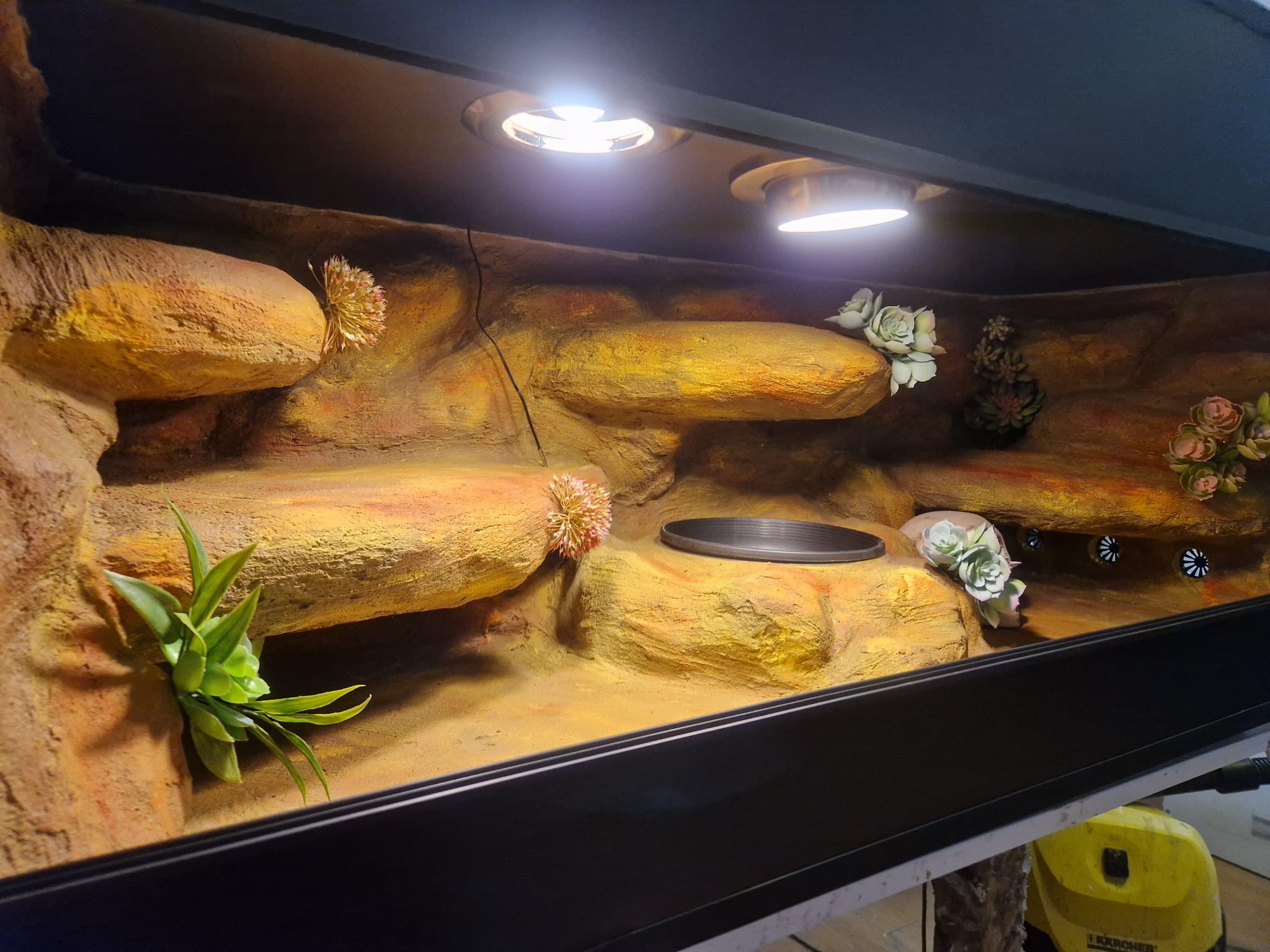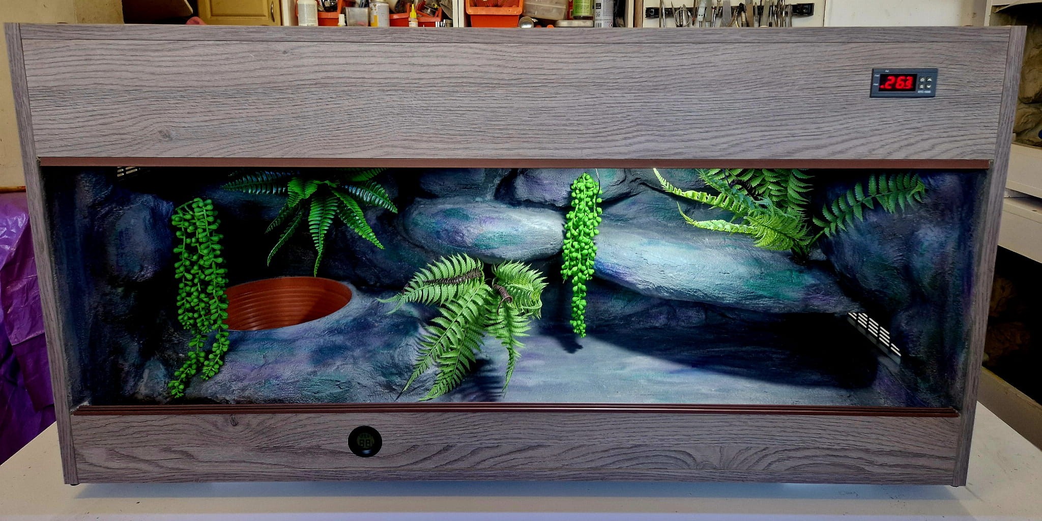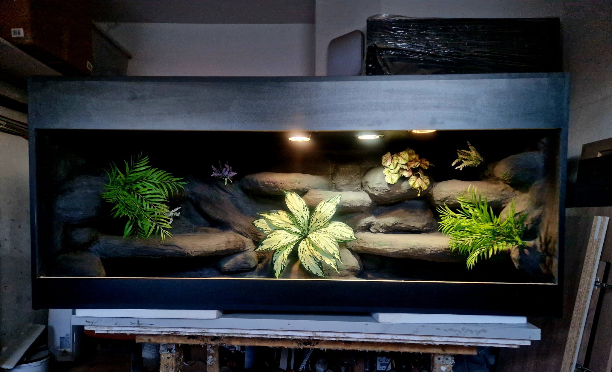 Zdjęcia przedstawiają wykonane przez nas terraria na indywidualne zamówienie i mogą być wzorem do kolejnych prac. Terraria zamówione przez Państwa nie będą więc kopią jak te przedstawione poniżej - mogą być jednak podobne. Każdy zbiornik budujemy od podstaw. Kupujący ma możliwość wyboru układu skał (w miarę możliwości) oraz koloru tła terrarium.