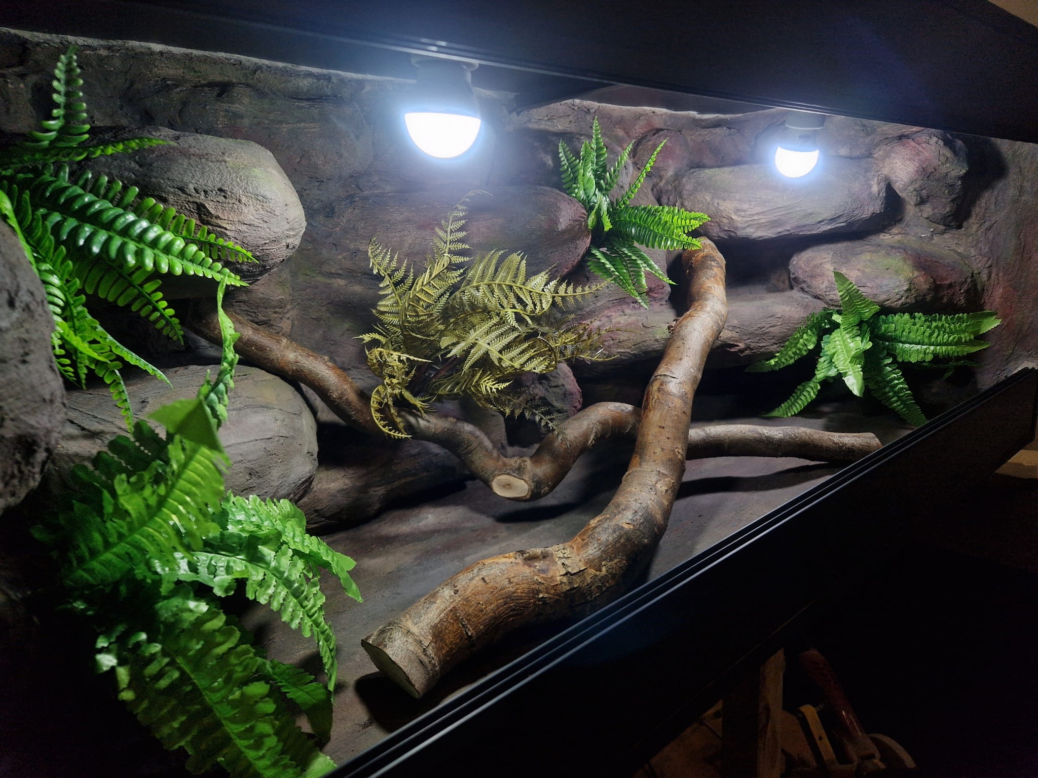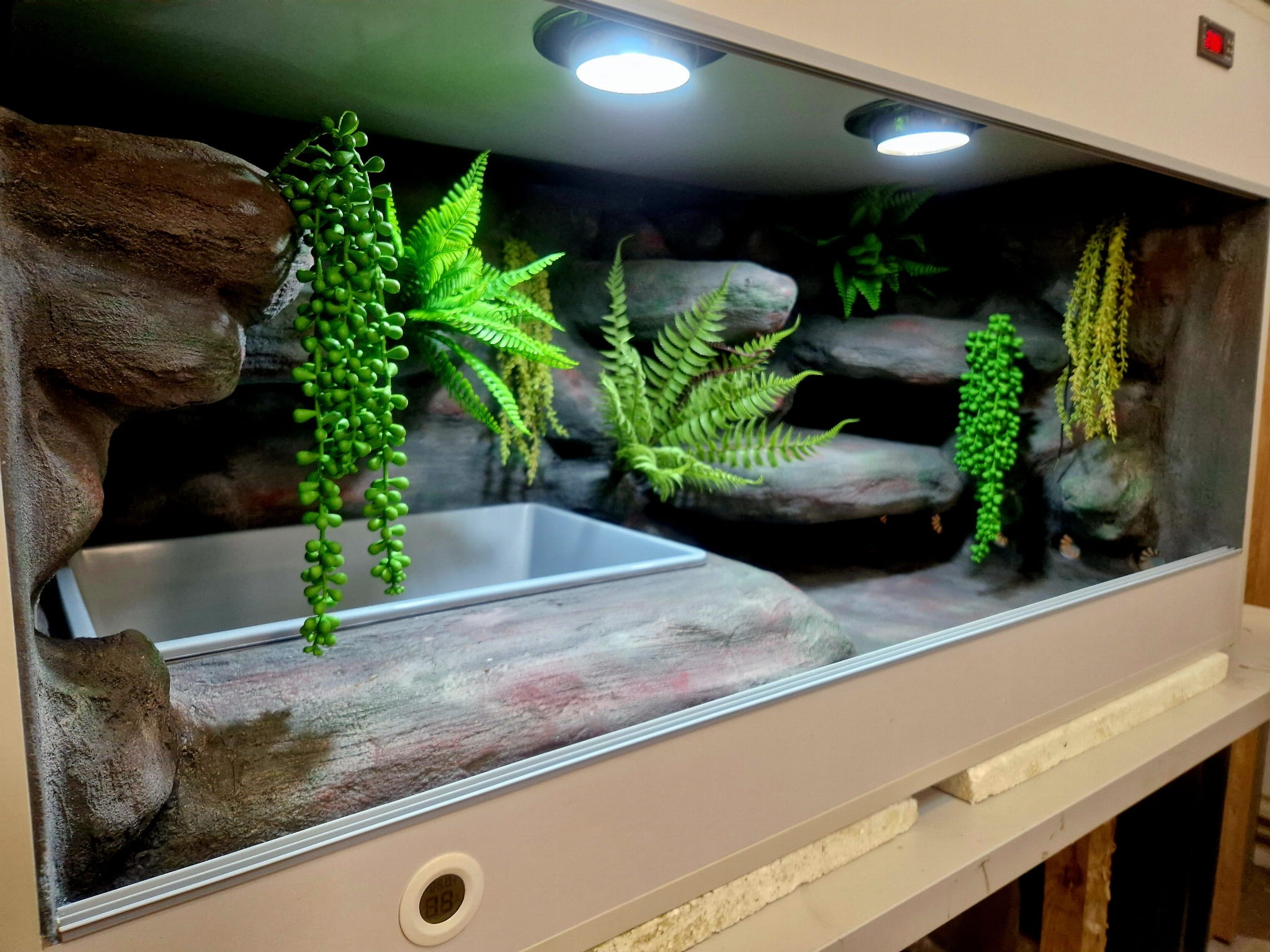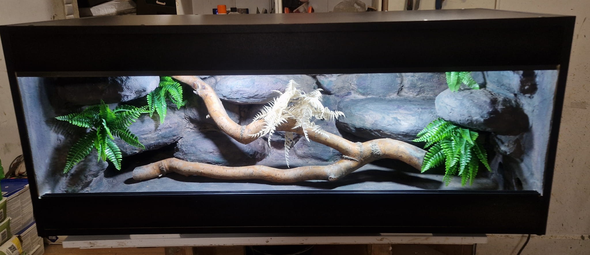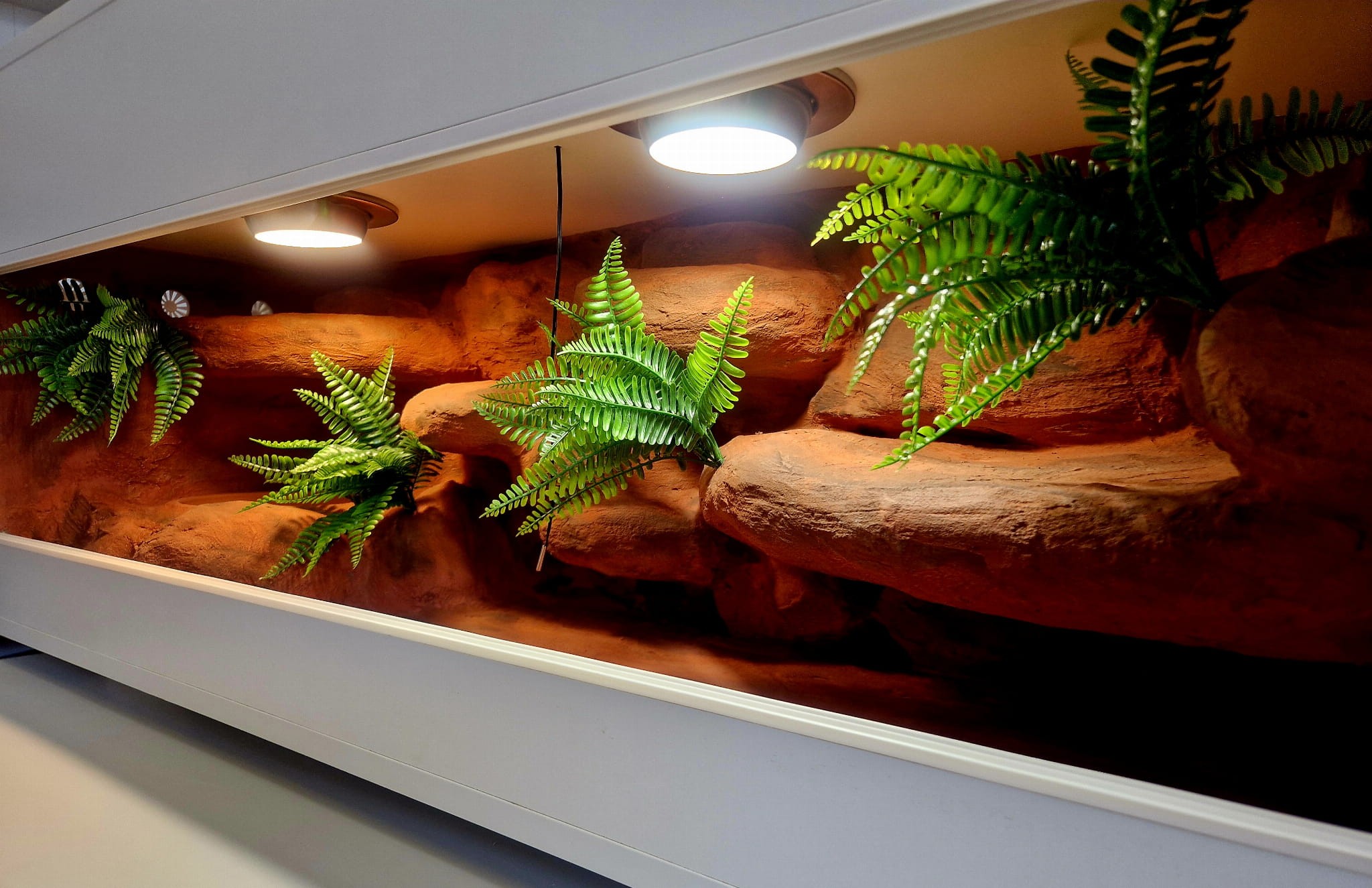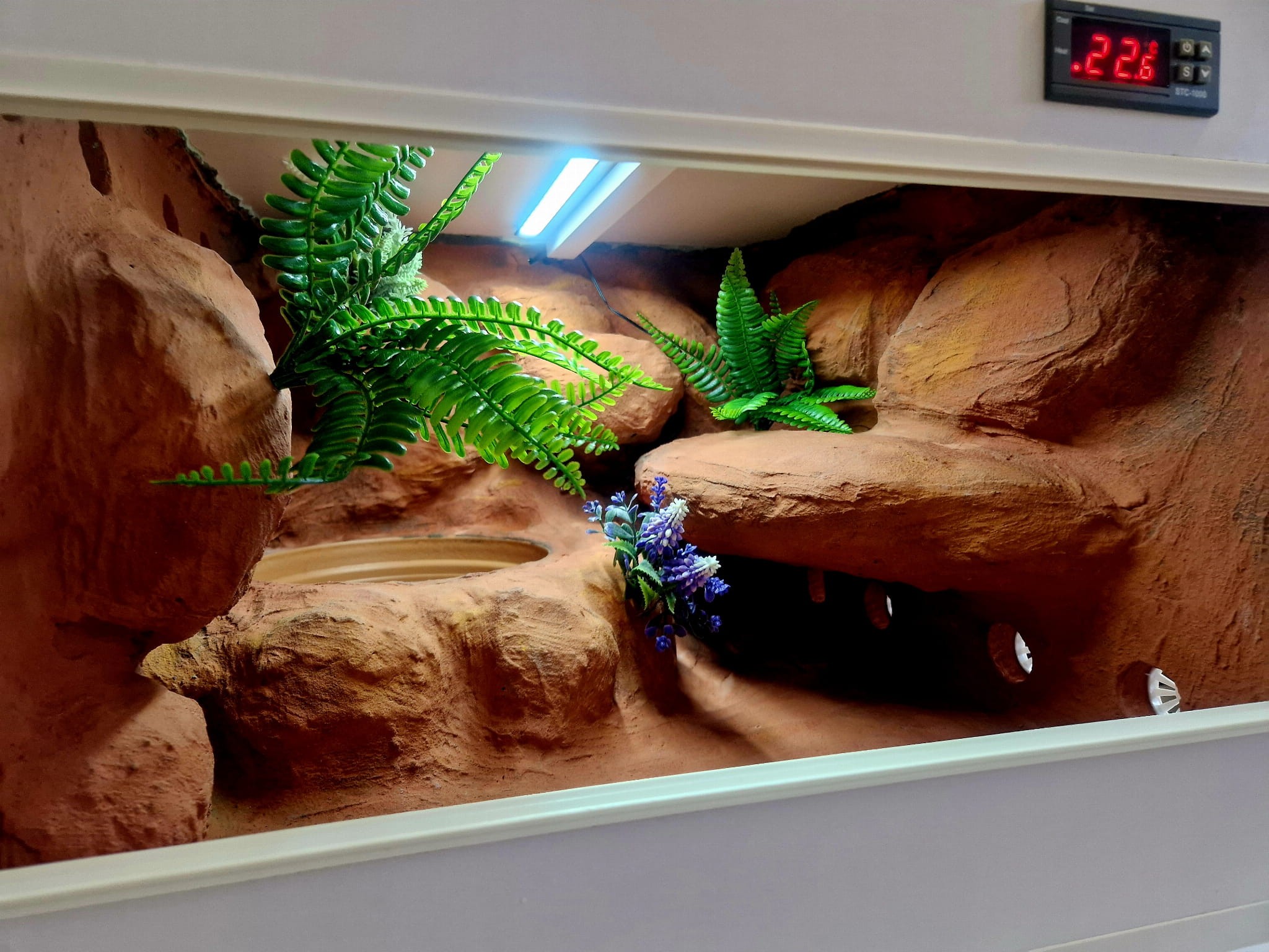 Zdjęcia przedstawiają wykonane przez nas terraria na indywidualne zamówienie i mogą być wzorem do kolejnych prac. Terraria zamówione przez Państwa nie będą więc kopią jak te przedstawione poniżej - mogą być jednak podobne. Każdy zbiornik budujemy od podstaw. Kupujący ma możliwość wyboru układu skał (w miarę możliwości) oraz koloru tła terrarium.