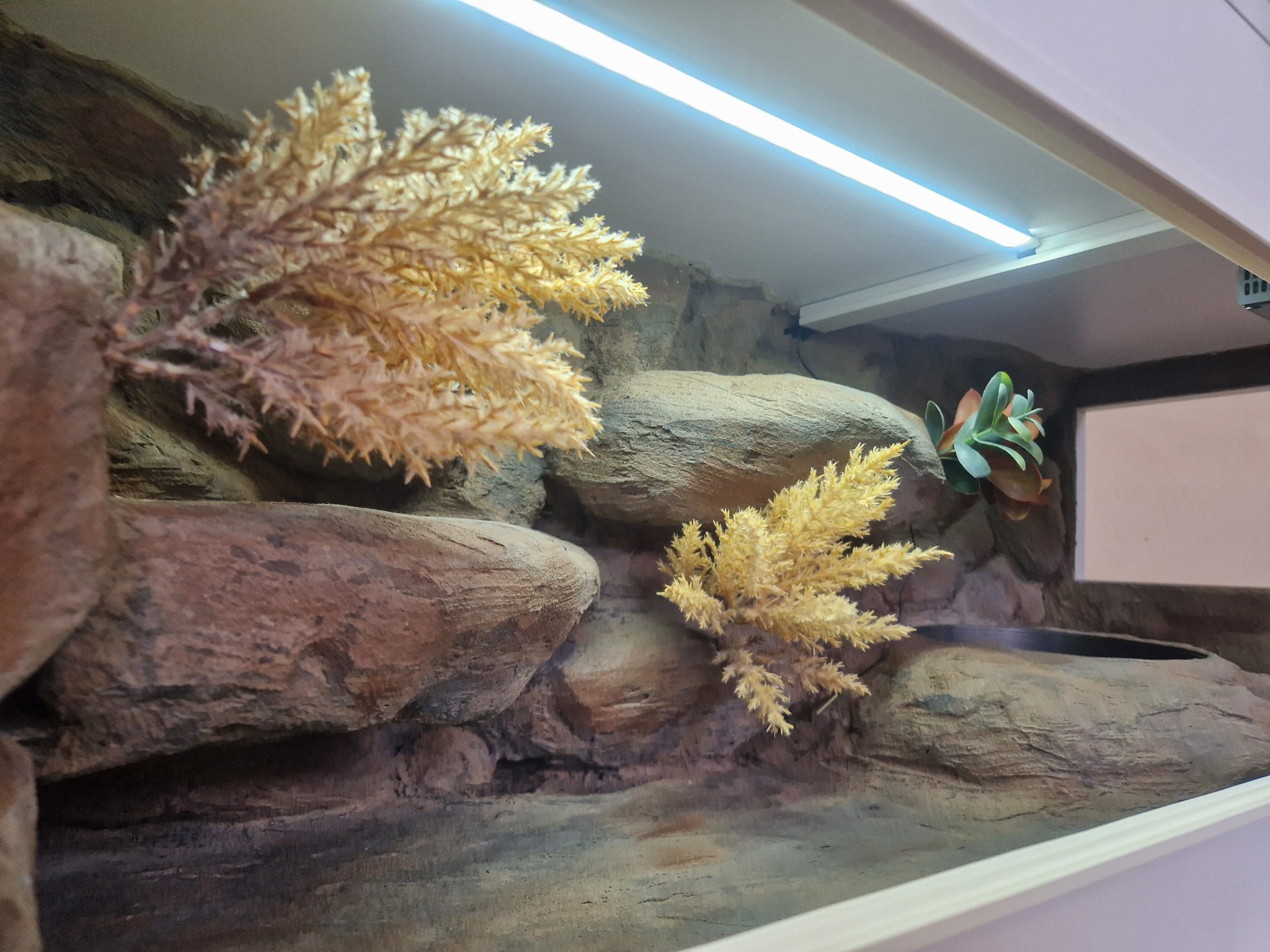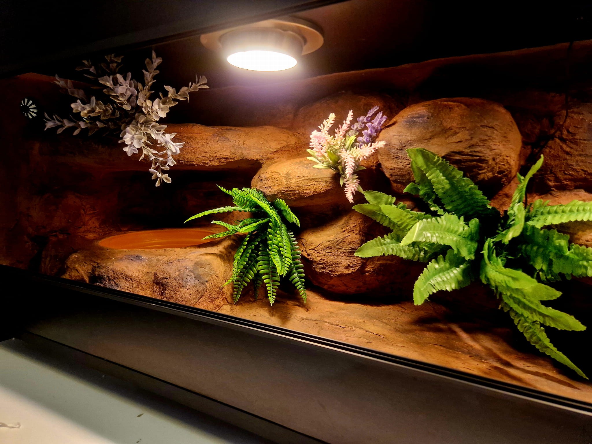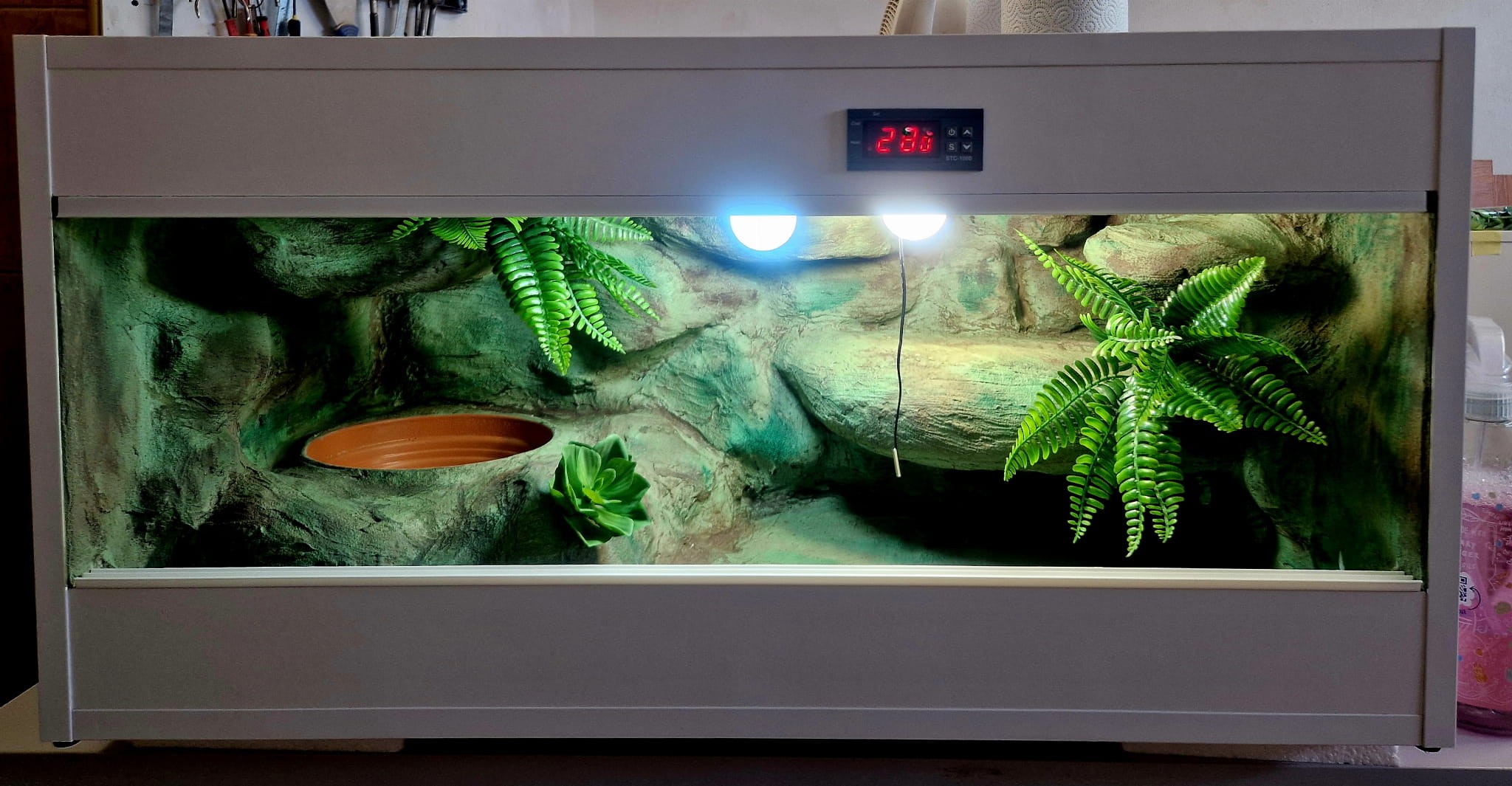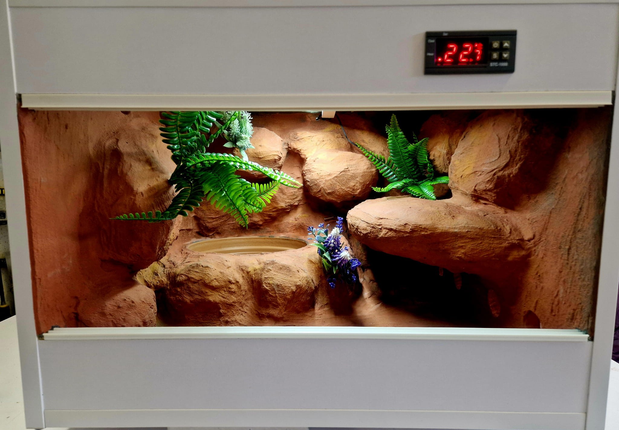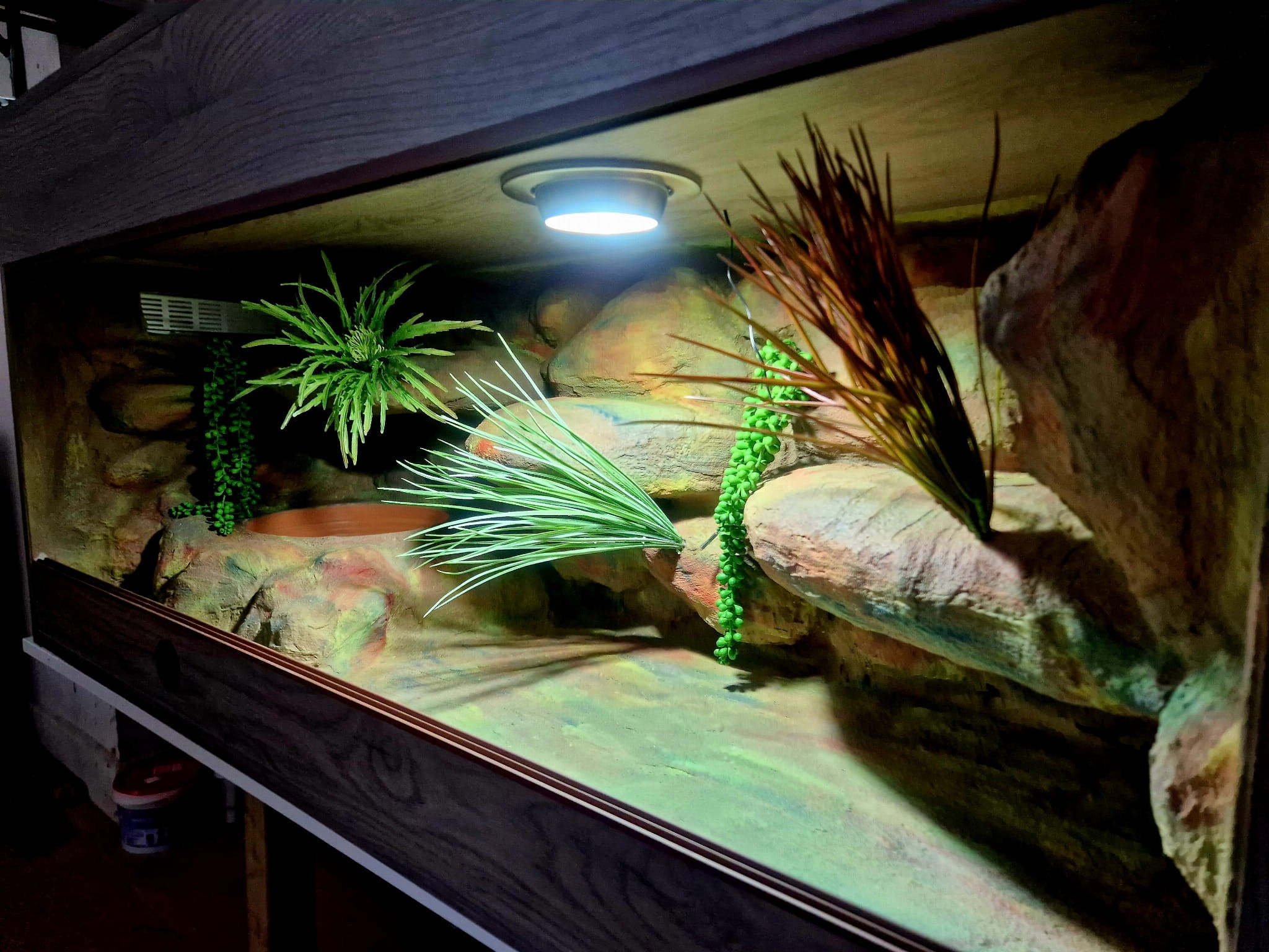 Zdjęcia przedstawiają wykonane przez nas terraria na indywidualne zamówienie i mogą być wzorem do kolejnych prac. Terraria zamówione przez Państwa nie będą więc kopią jak te przedstawione poniżej - mogą być jednak podobne. Każdy zbiornik budujemy od podstaw. Kupujący ma możliwość wyboru układu skał (w miarę możliwości) oraz koloru tła terrarium.