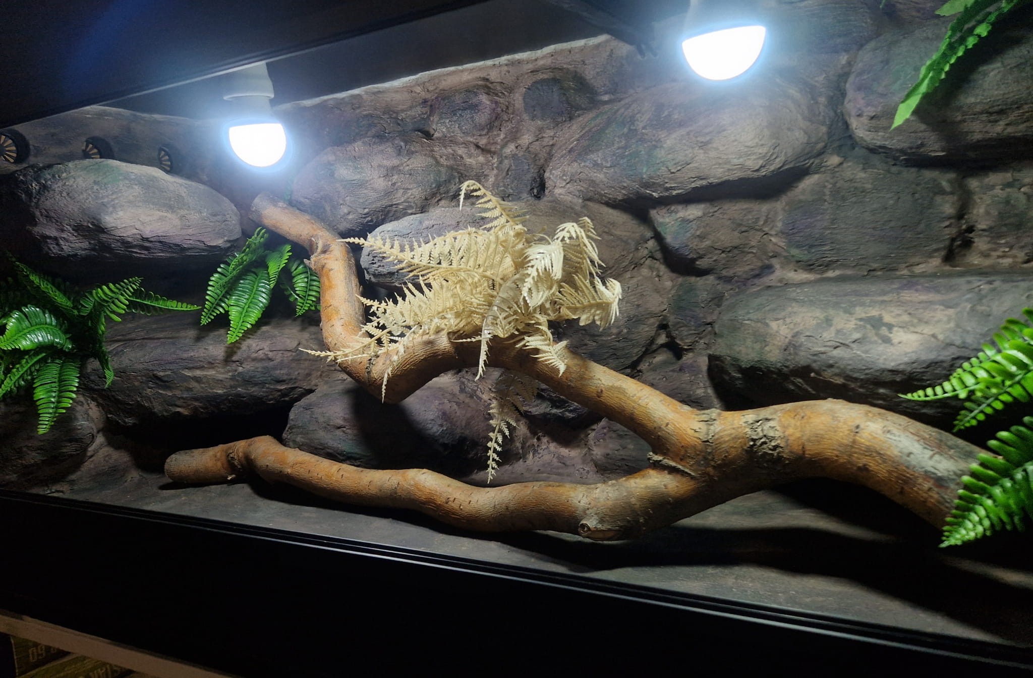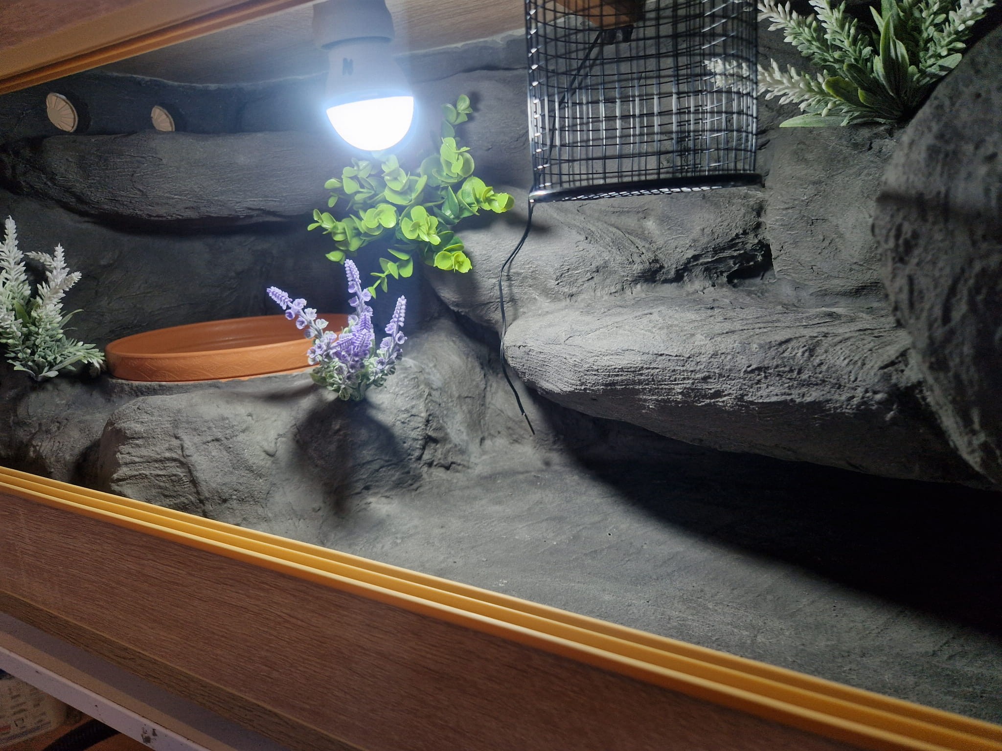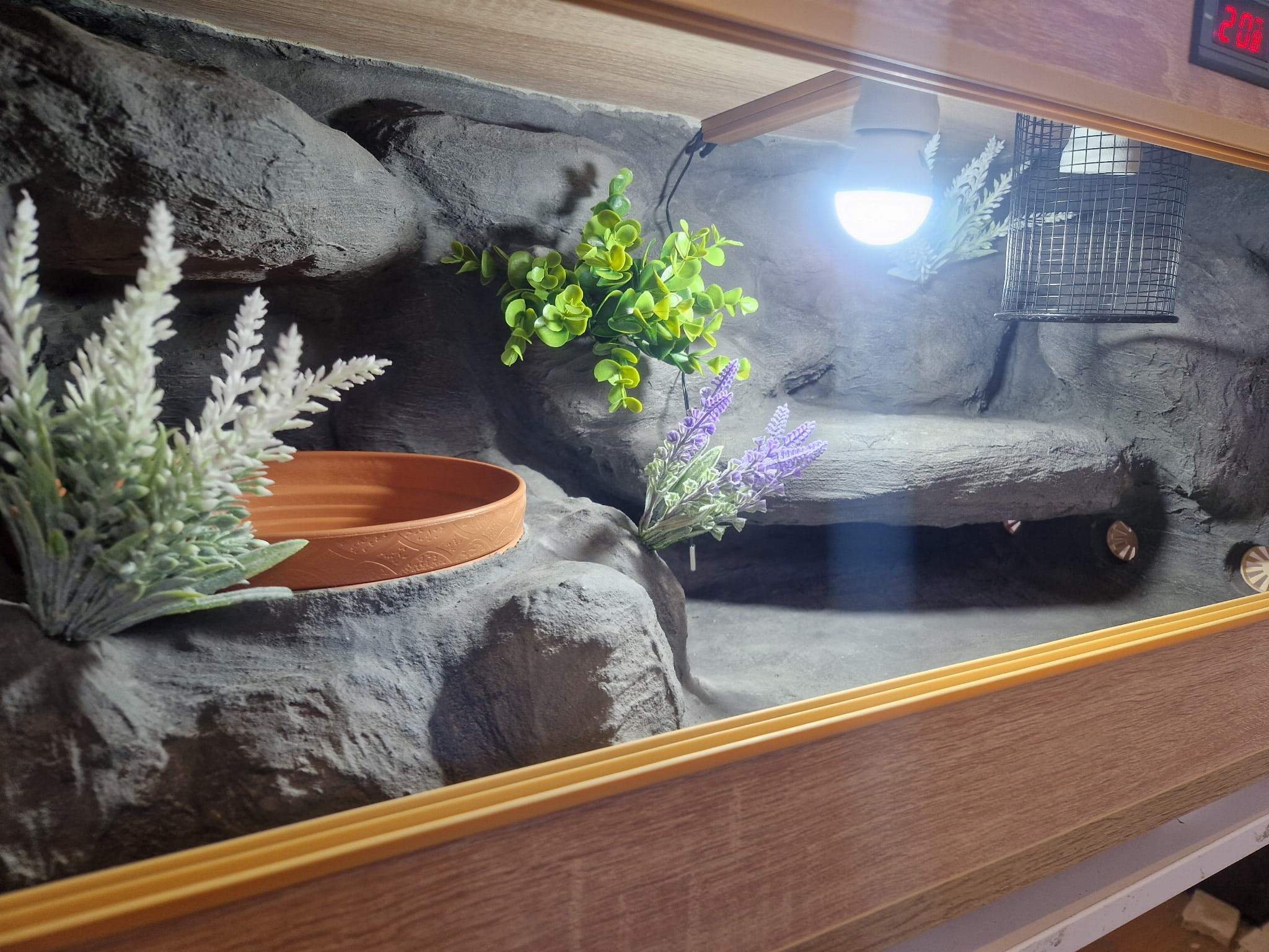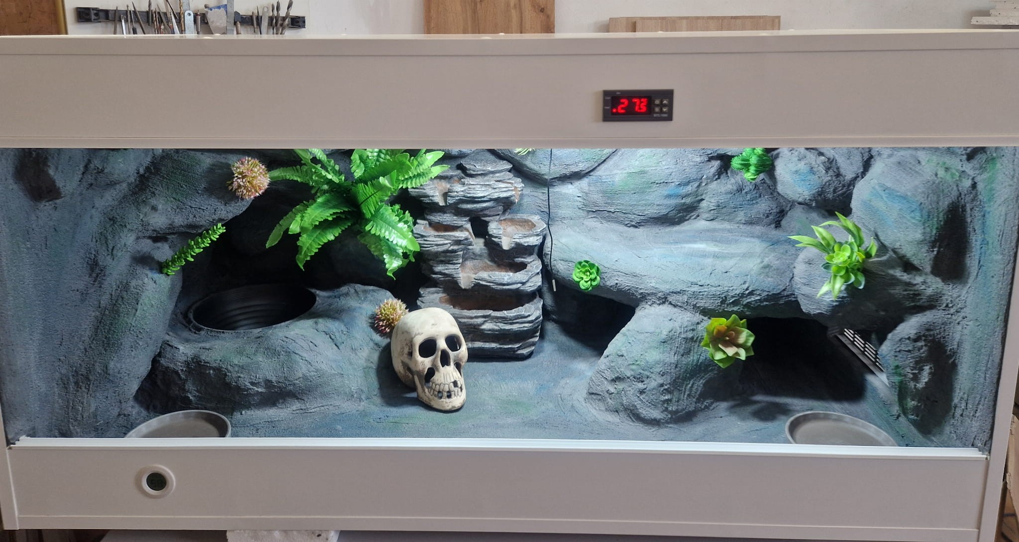 Korzenie, sterowniki, włączniki, żarówki, czaszki, higrometry widoczne na niektórych przykładowych zdjęciach nie wchodzą w skład podstawowego wyposażenia terrarium. Jest jednak możliwość doposażenia zbiornika za dopłatą.