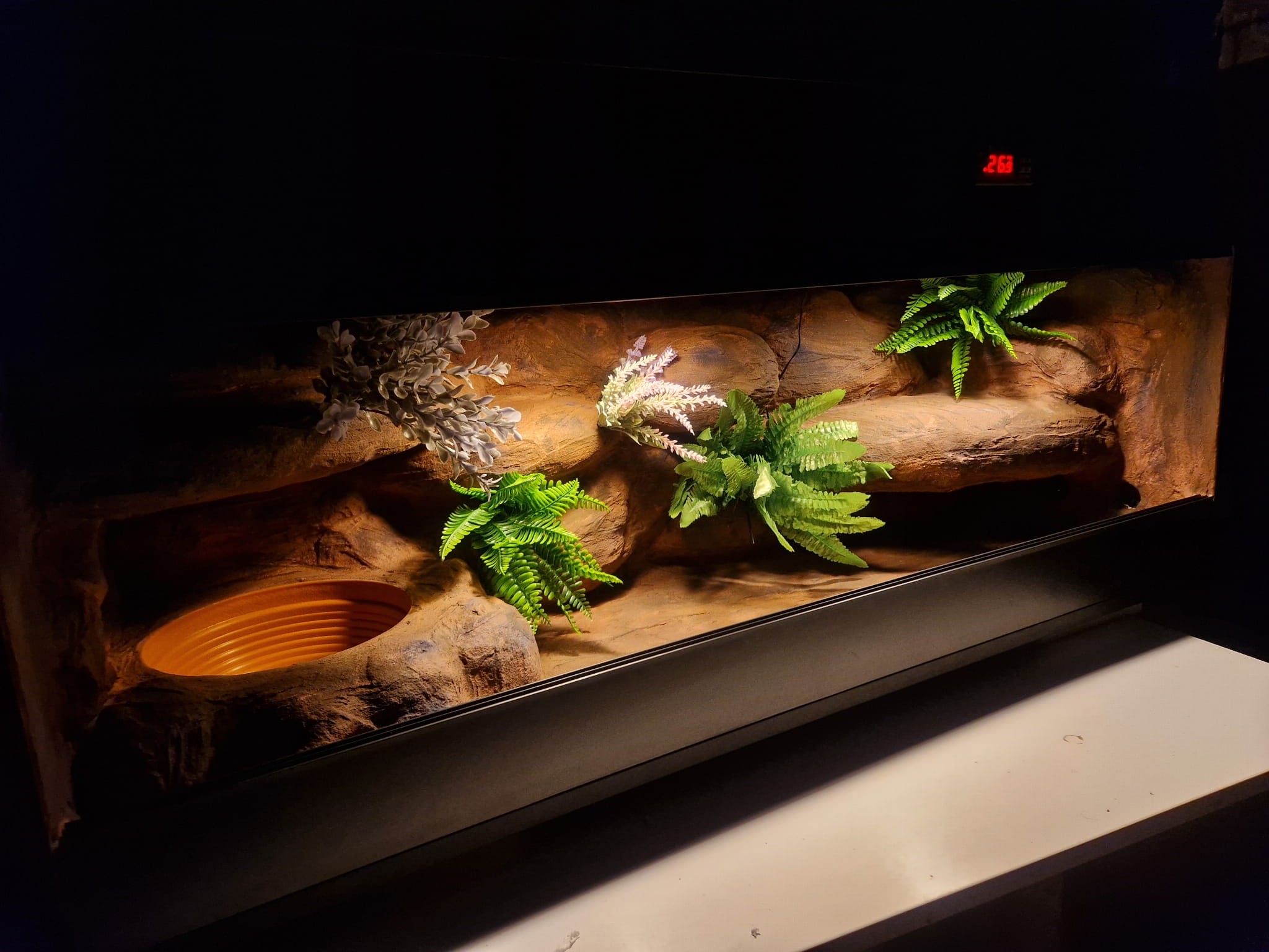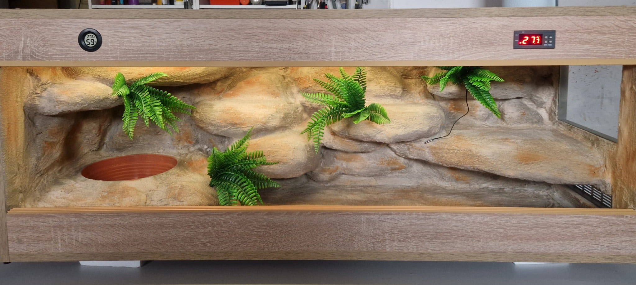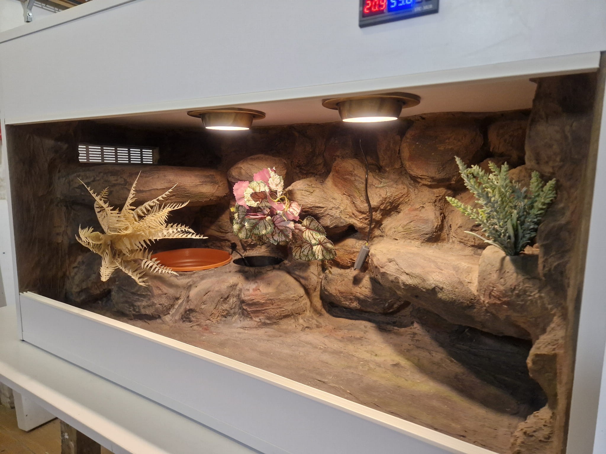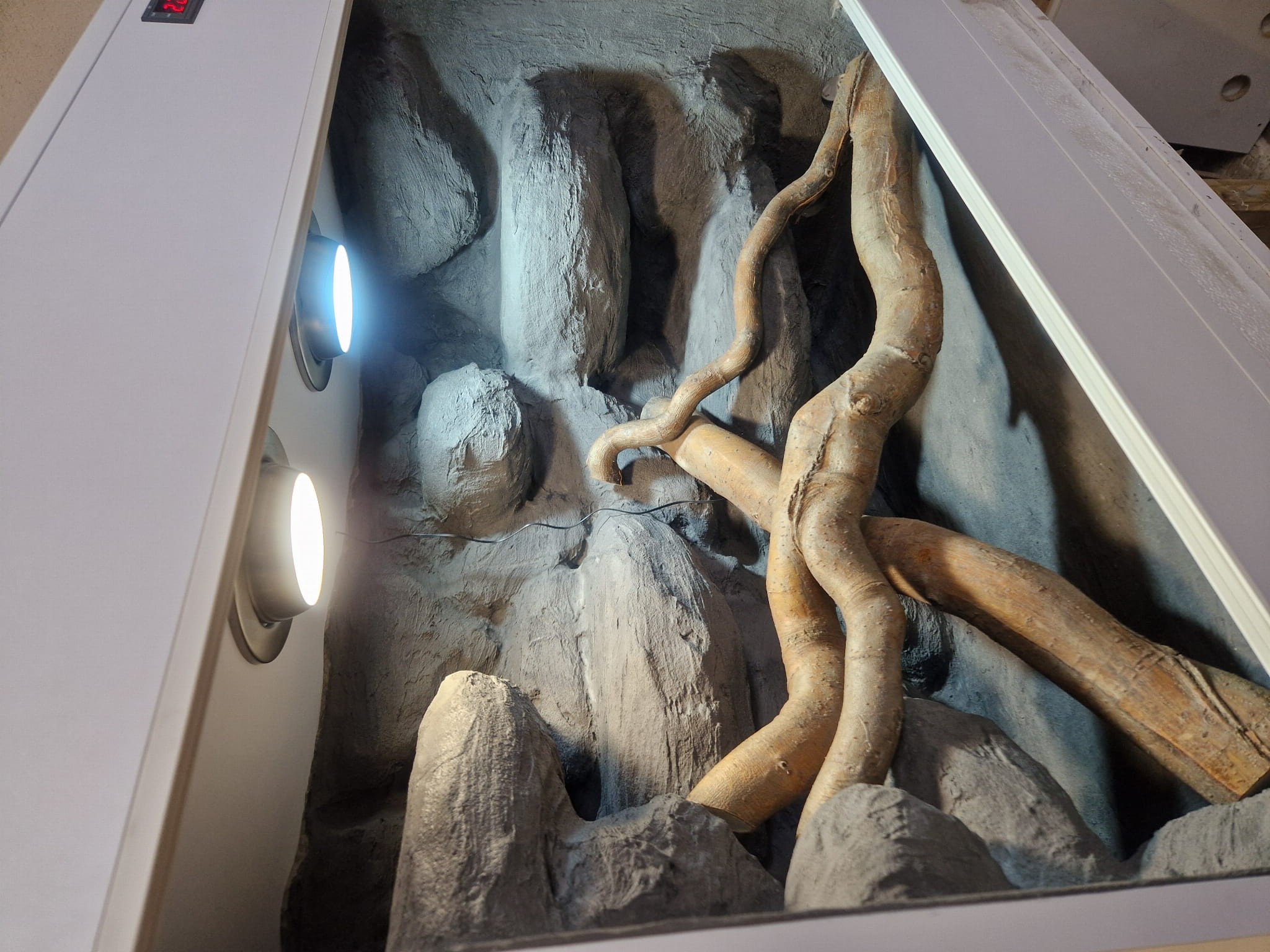 Korzenie, sterowniki, włączniki, żarówki, czaszki, higrometry widoczne na niektórych przykładowych zdjęciach nie wchodzą w skład podstawowego wyposażenia terrarium. Jest jednak możliwość doposażenia zbiornika za dopłatą.