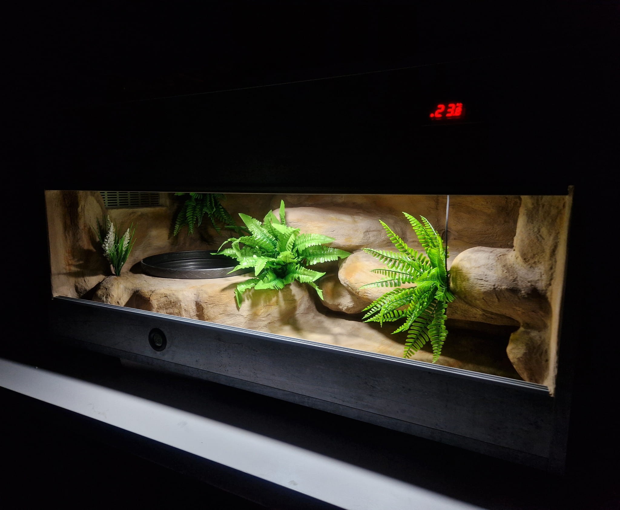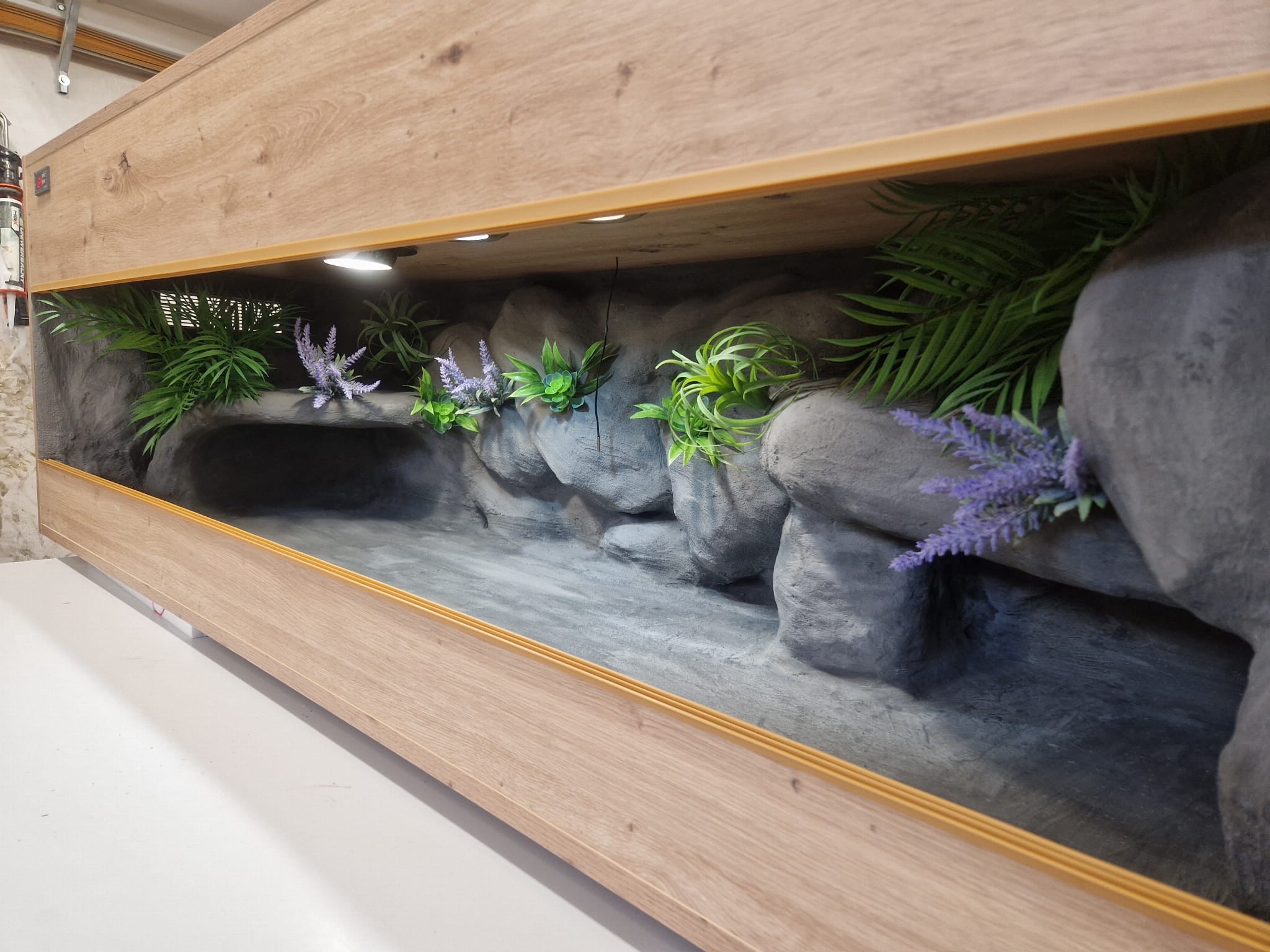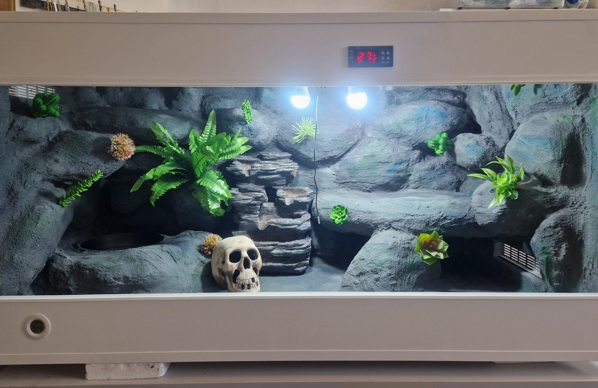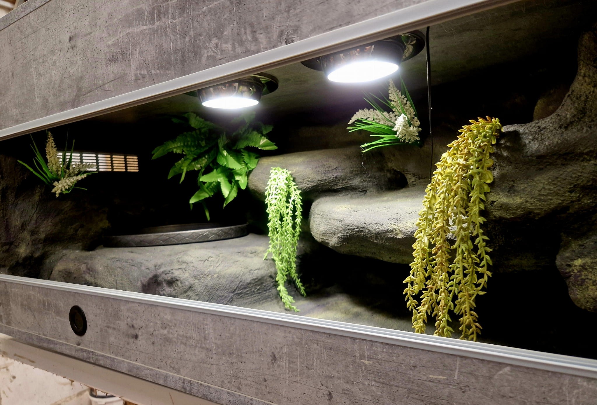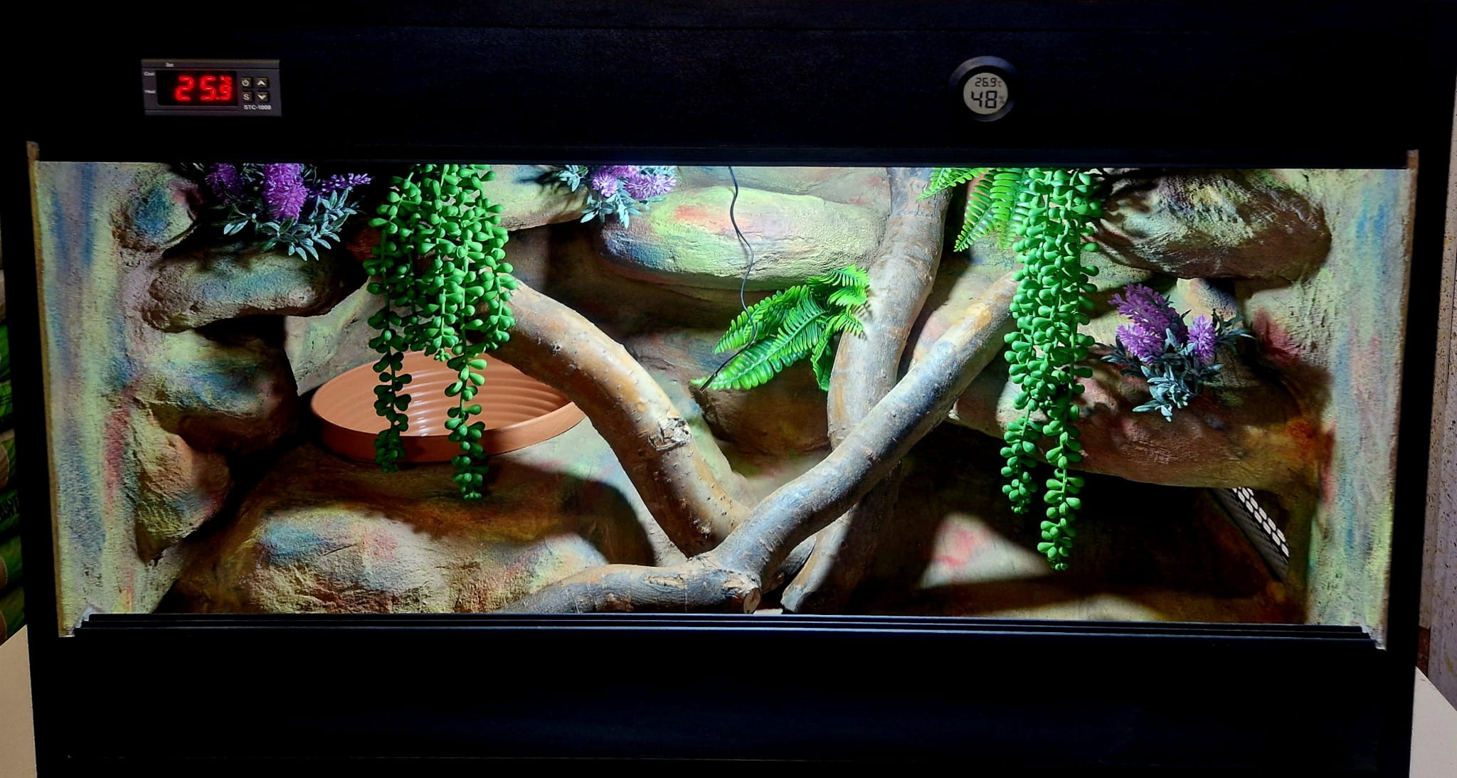 Korzenie, sterowniki, włączniki, żarówki, czaszki, higrometry widoczne na niektórych przykładowych zdjęciach nie wchodzą w skład podstawowego wyposażenia terrarium. Jest jednak możliwość doposażenia zbiornika za dopłatą.