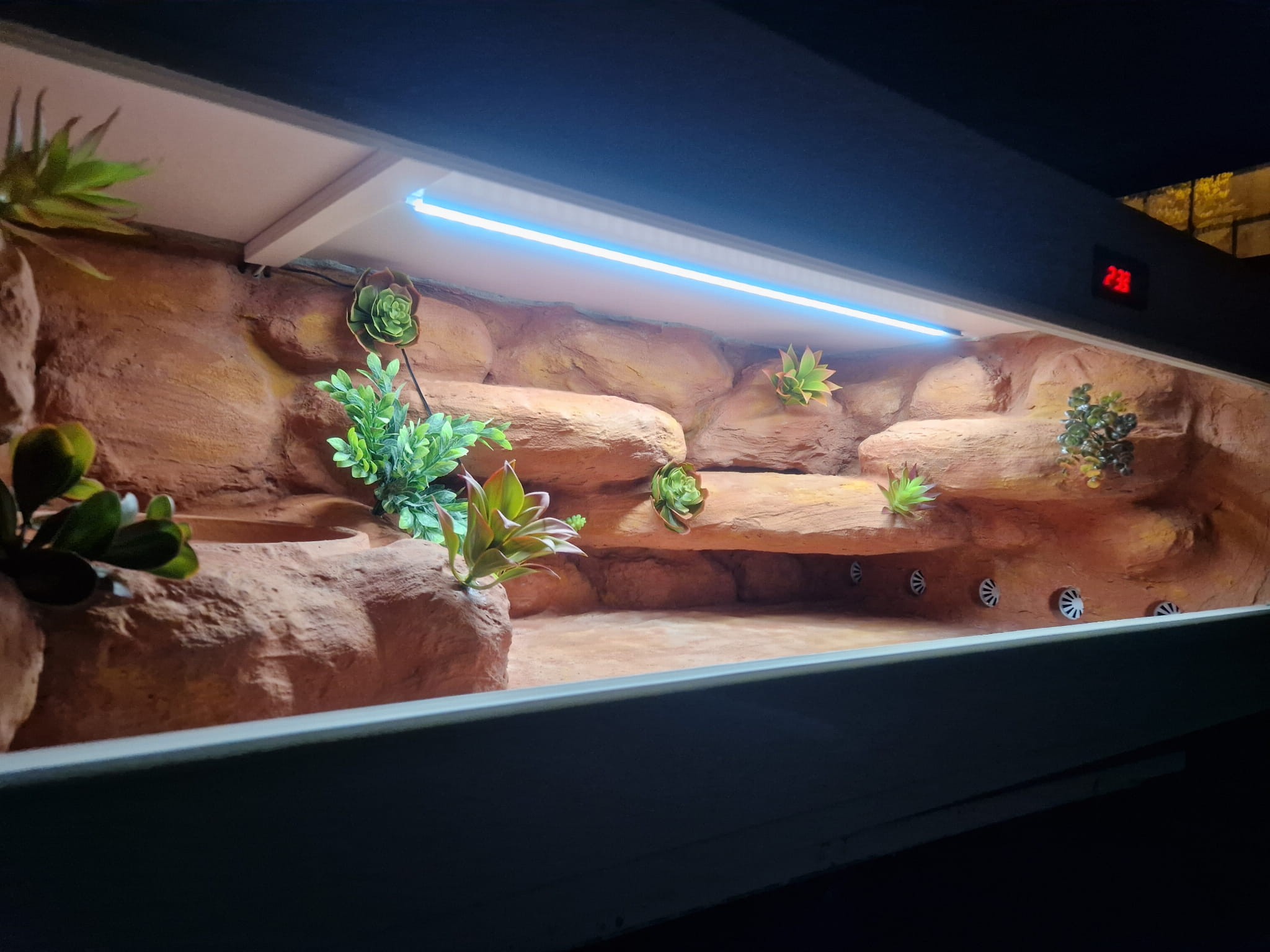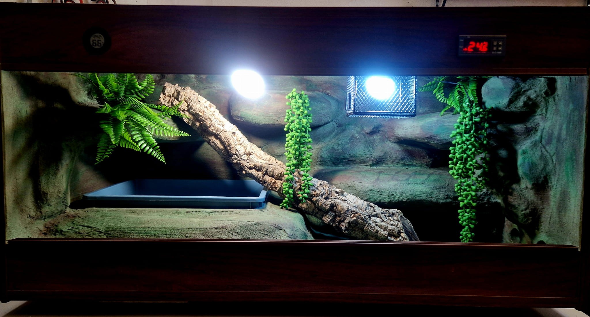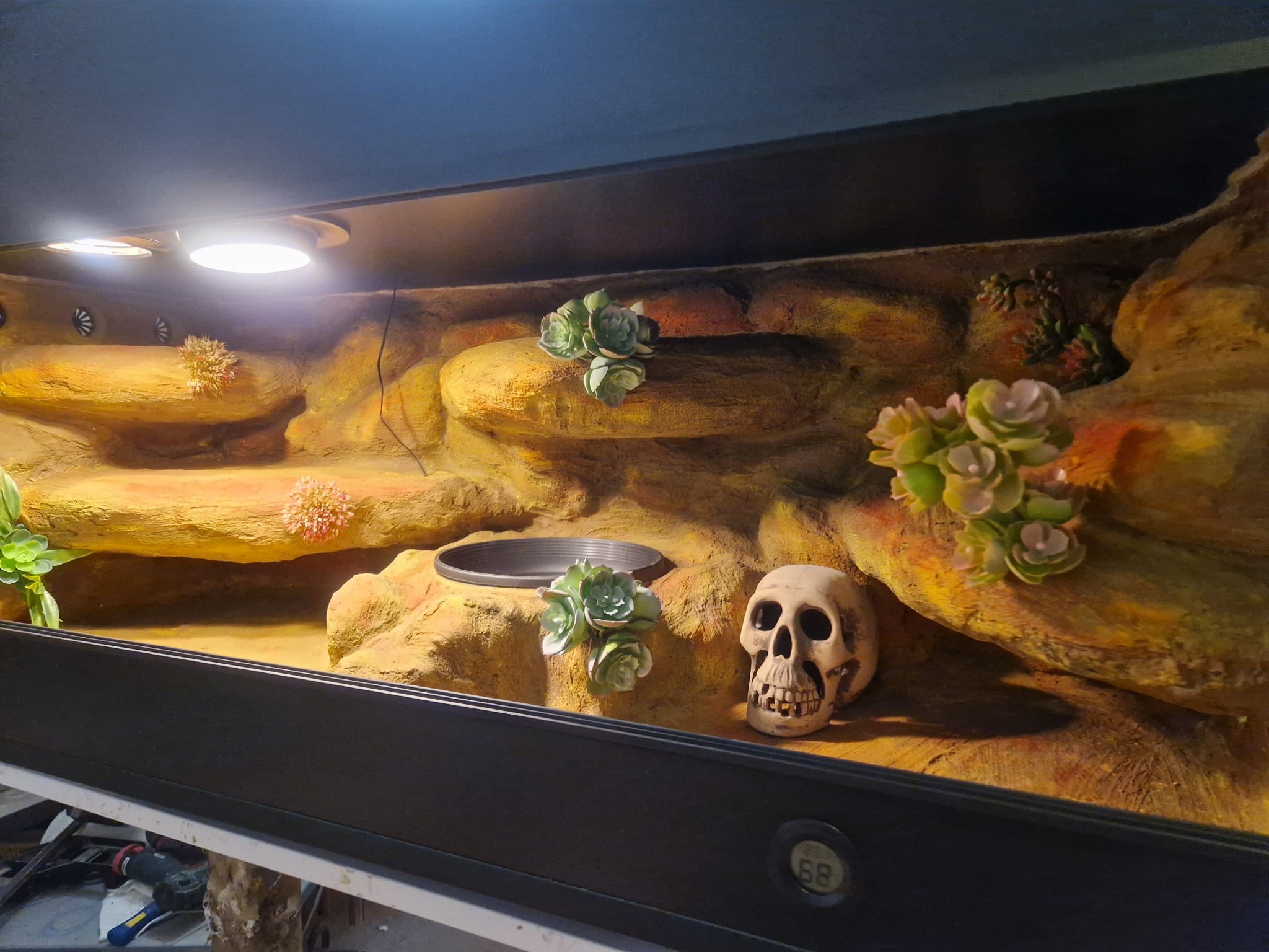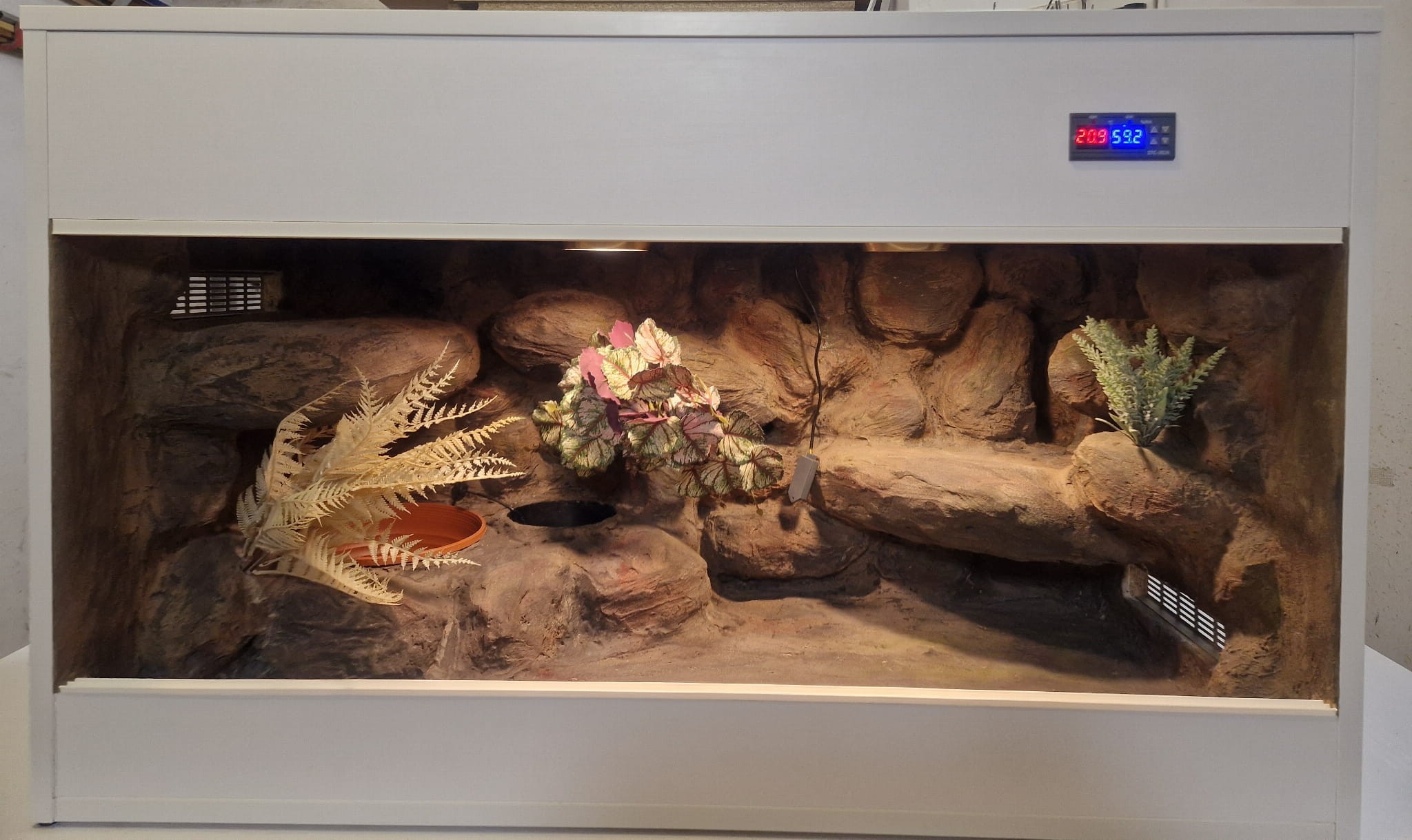 Korzenie, sterowniki, włączniki, żarówki, czaszki, higrometry widoczne na niektórych przykładowych zdjęciach nie wchodzą w skład podstawowego wyposażenia terrarium. Jest jednak możliwość doposażenia zbiornika za dopłatą.