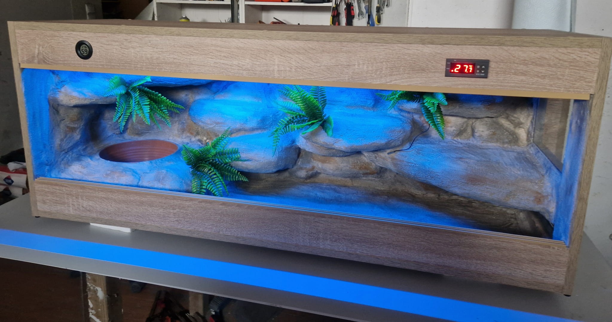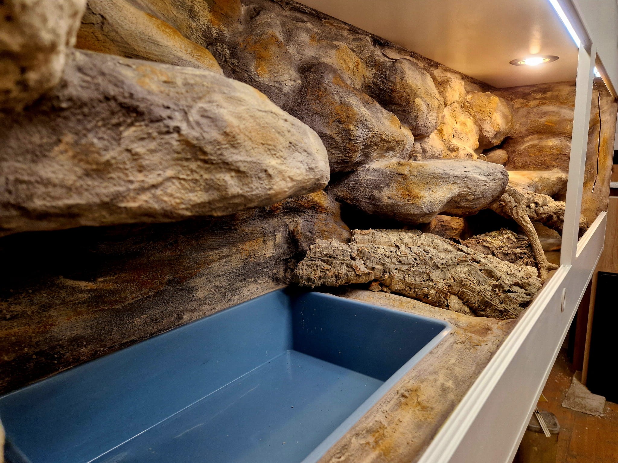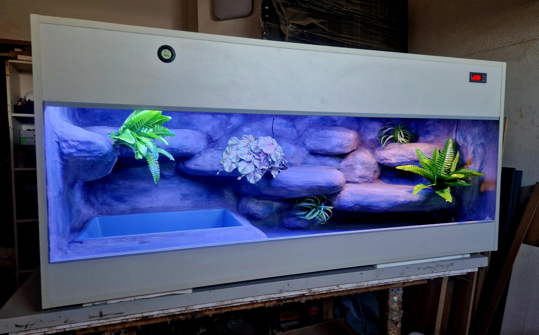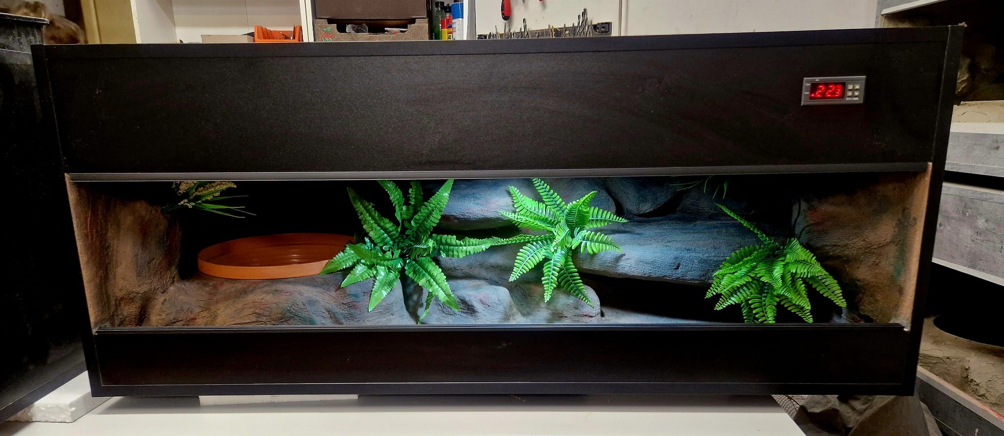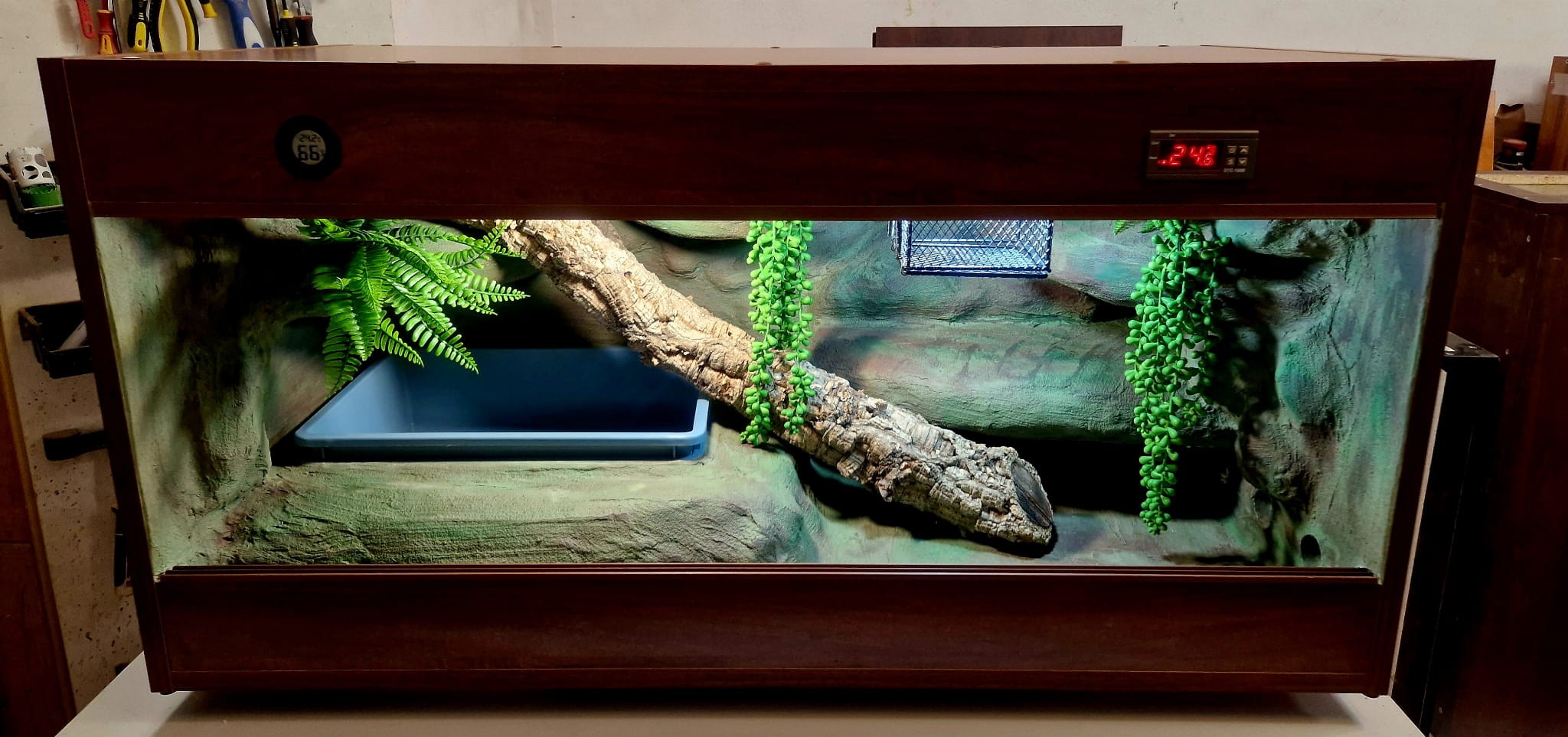 - sufit podwieszany, który zabiera nam 12 cm przestrzeni od góry zbiornika - dzięki niemu mamy maksymalnie ukrytą elektrykę co jest najbardziej bezpieczną opcją dla węży