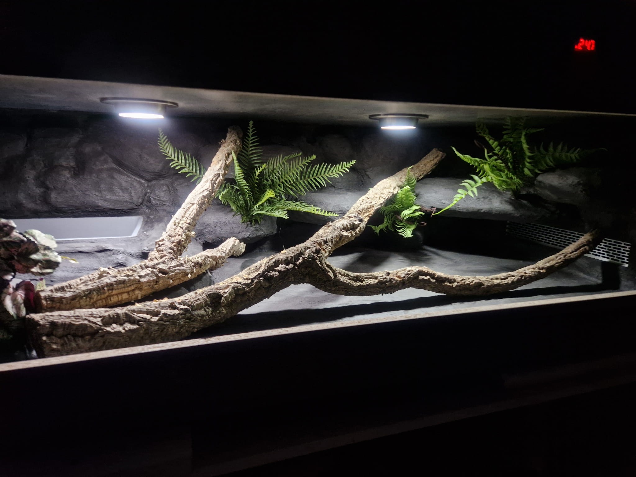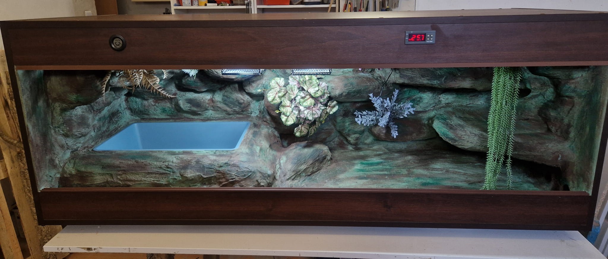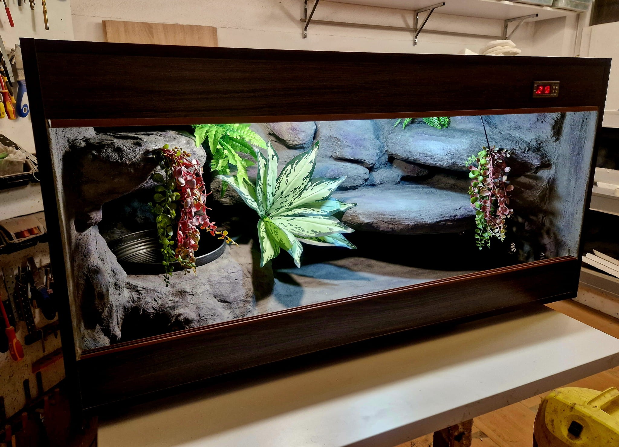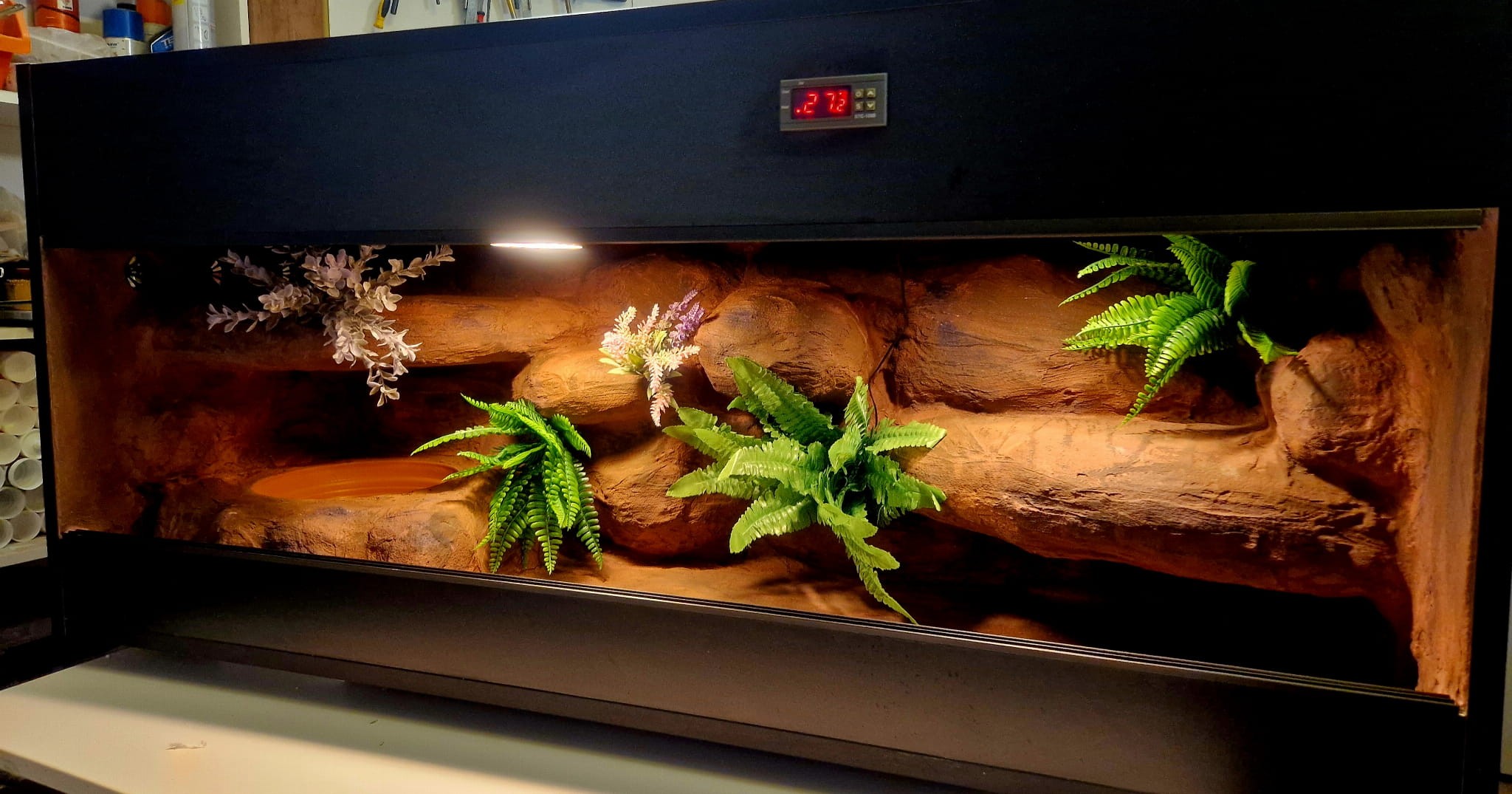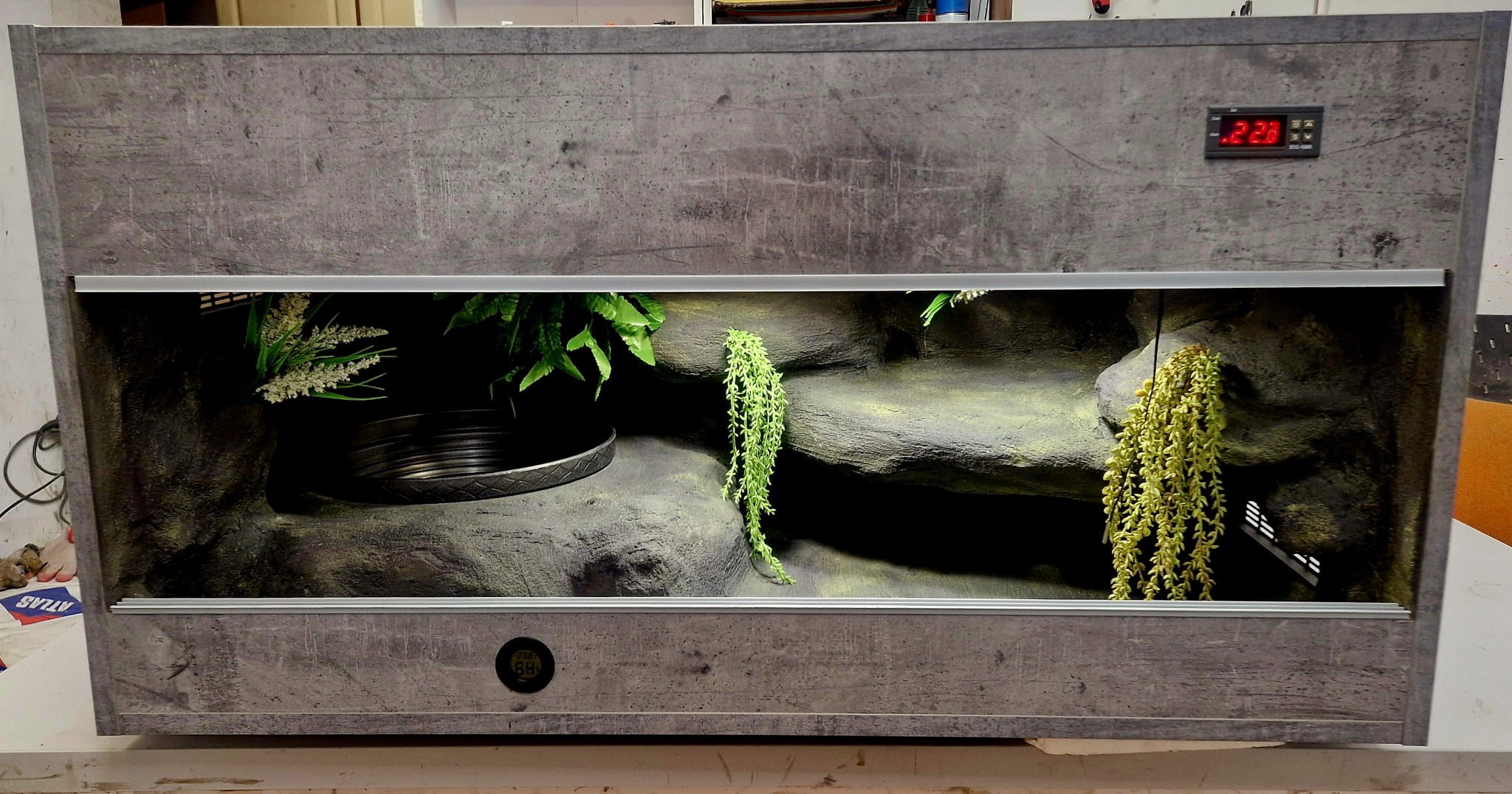 - sufit podwieszany, który zabiera nam 12 cm przestrzeni od góry zbiornika - dzięki niemu mamy maksymalnie ukrytą elektrykę co jest najbardziej bezpieczną opcją dla węży