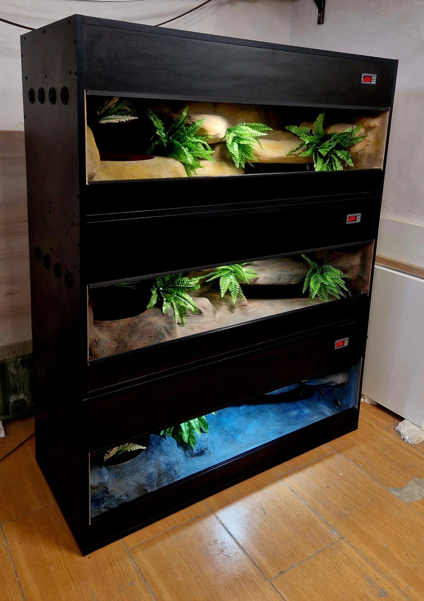 Każde terrarium wykonujemy dla danego gatunku zwierząt oraz według wytycznych klienta.
