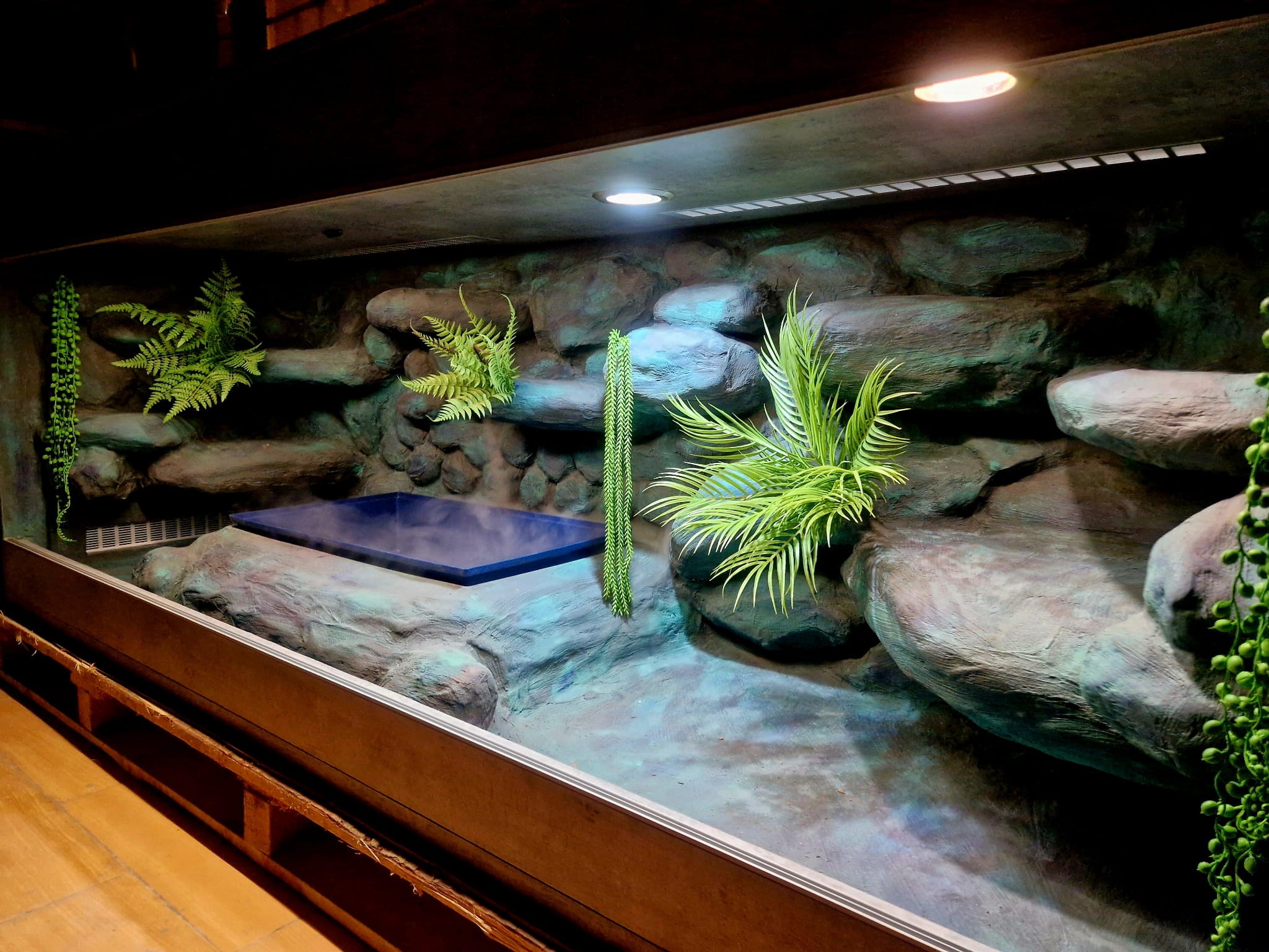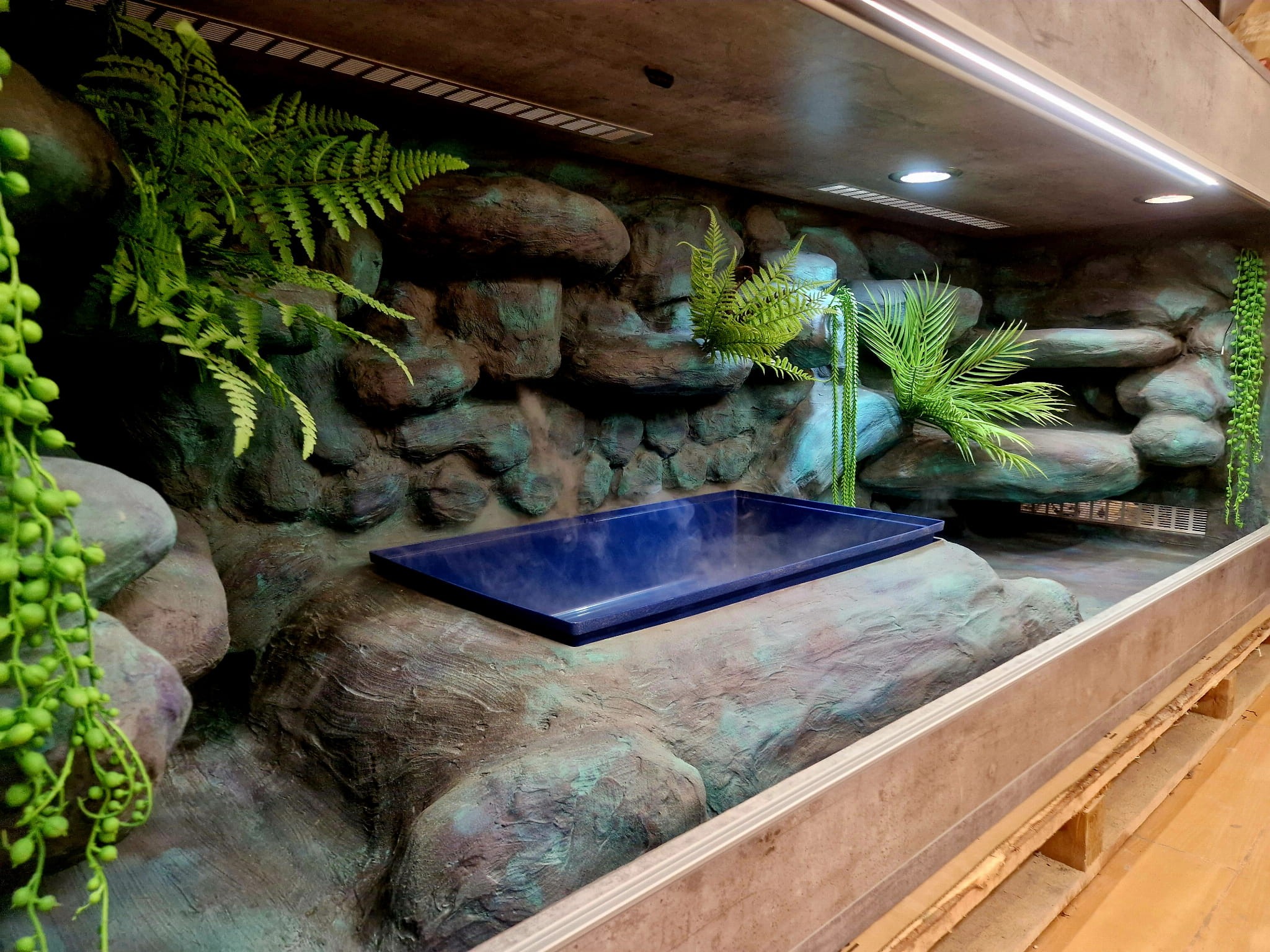 - basen zabudowany w skałach, ale wyjmowany w celu łatwego czyszczenia oraz swobodnej wymiany wody